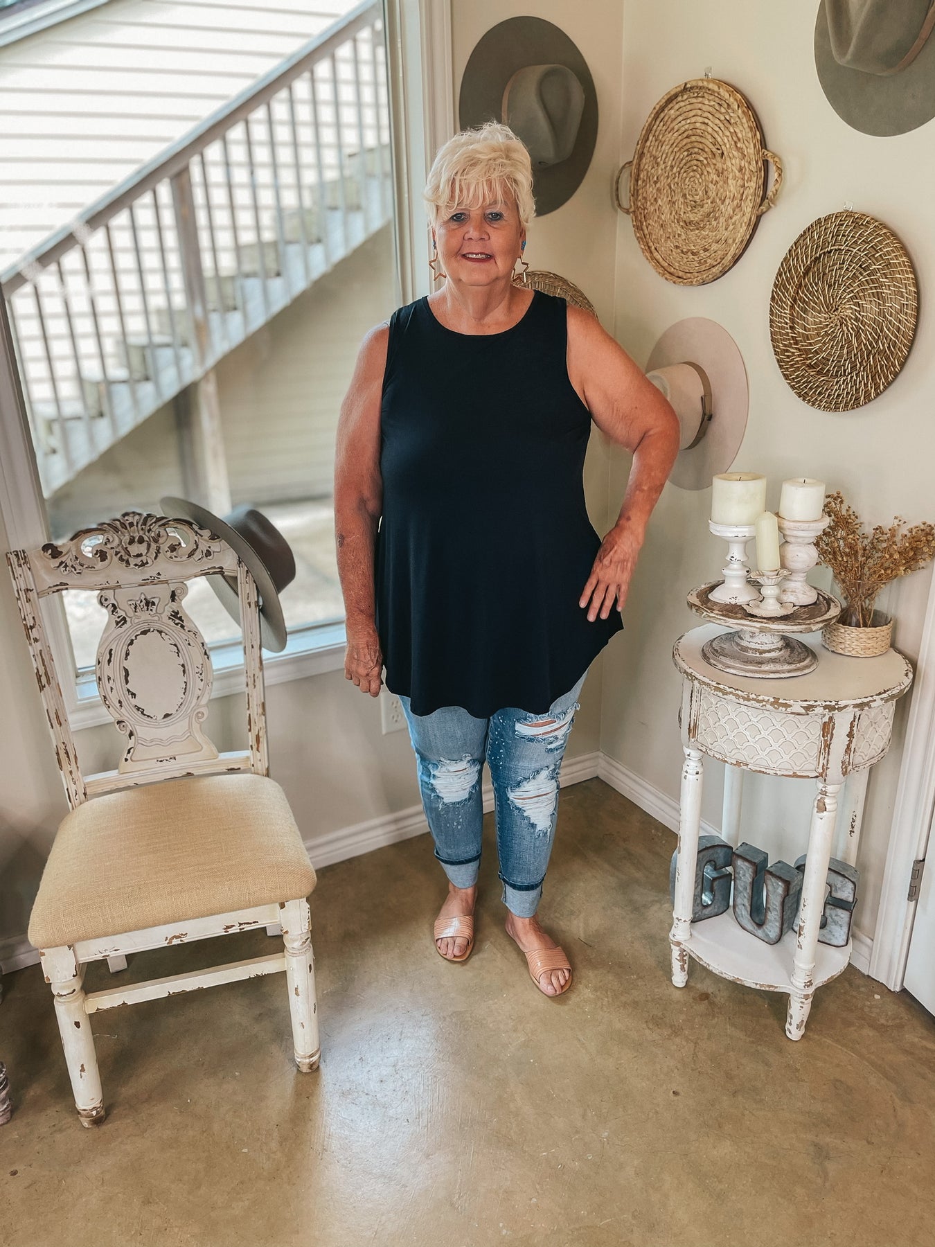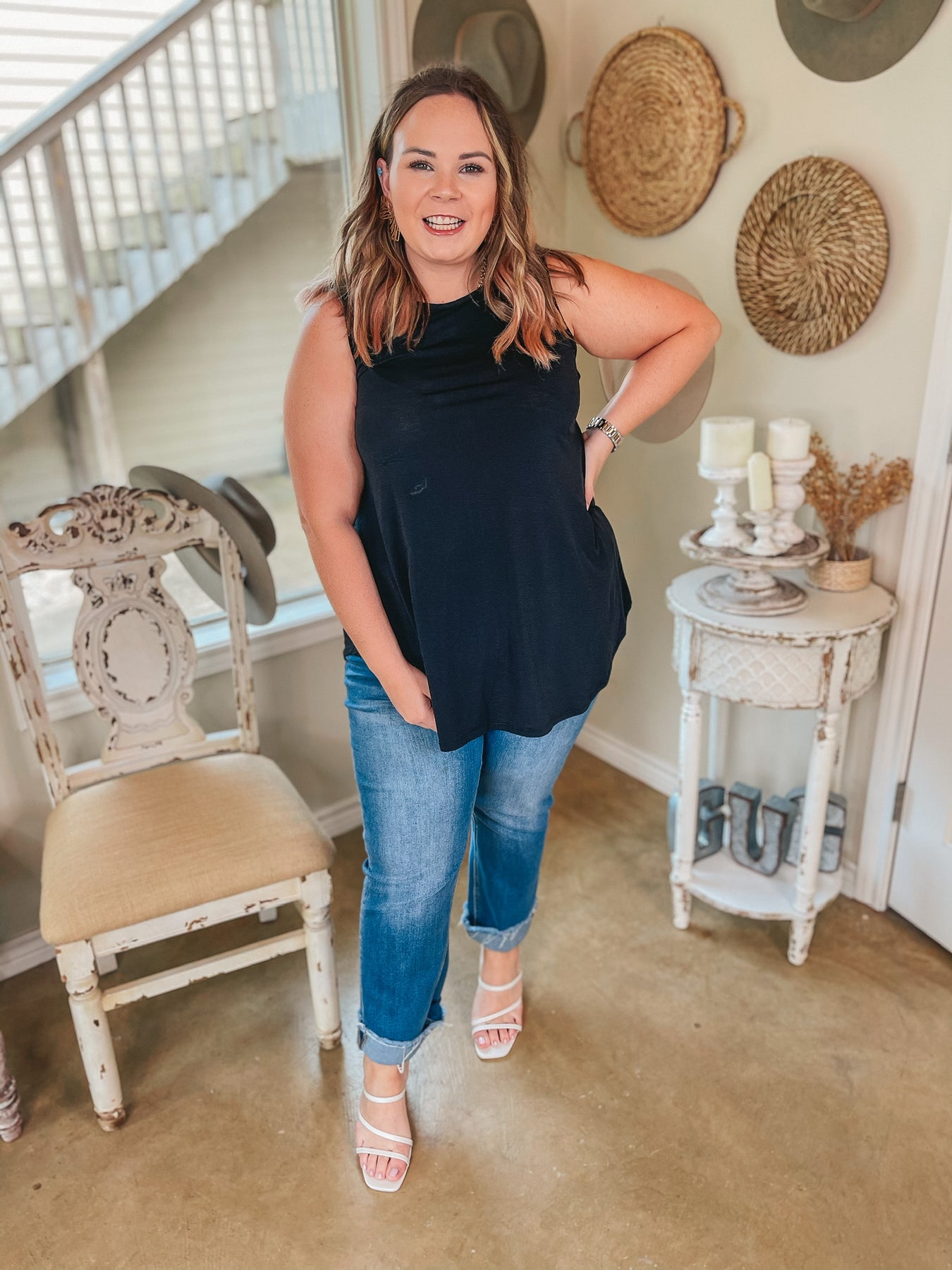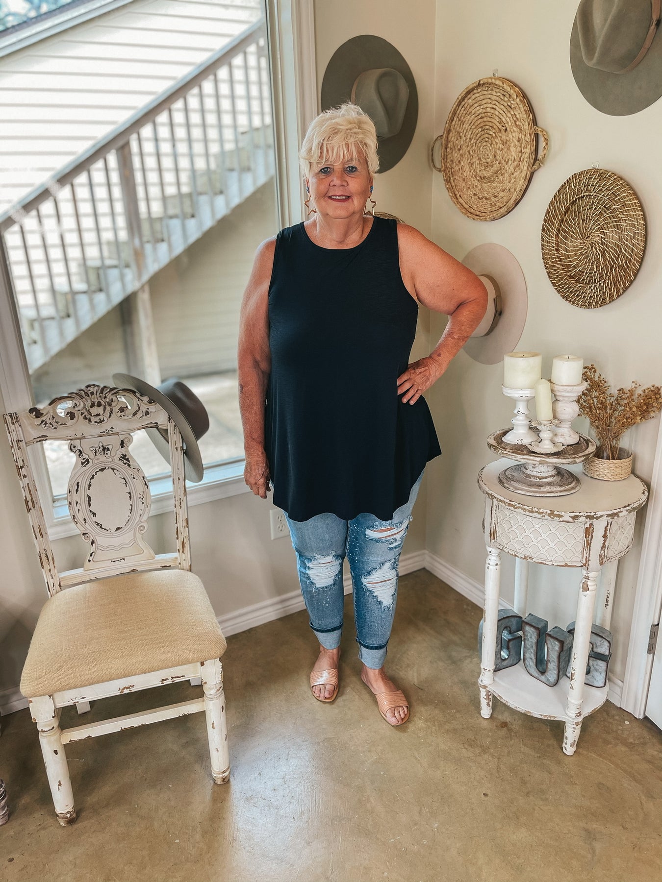 Give Me Joy Solid Bulgari A-Line Tank Top in Black