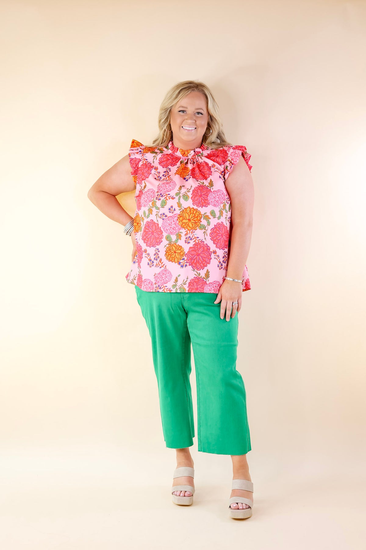Blossom Breeze Floral Print Ruffle Cap Sleeve Top in Pink