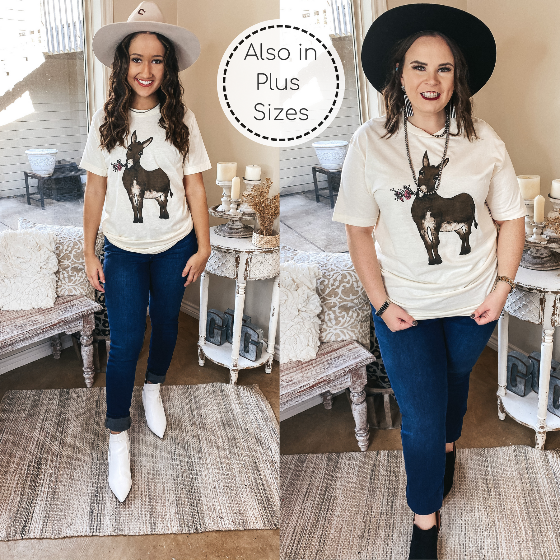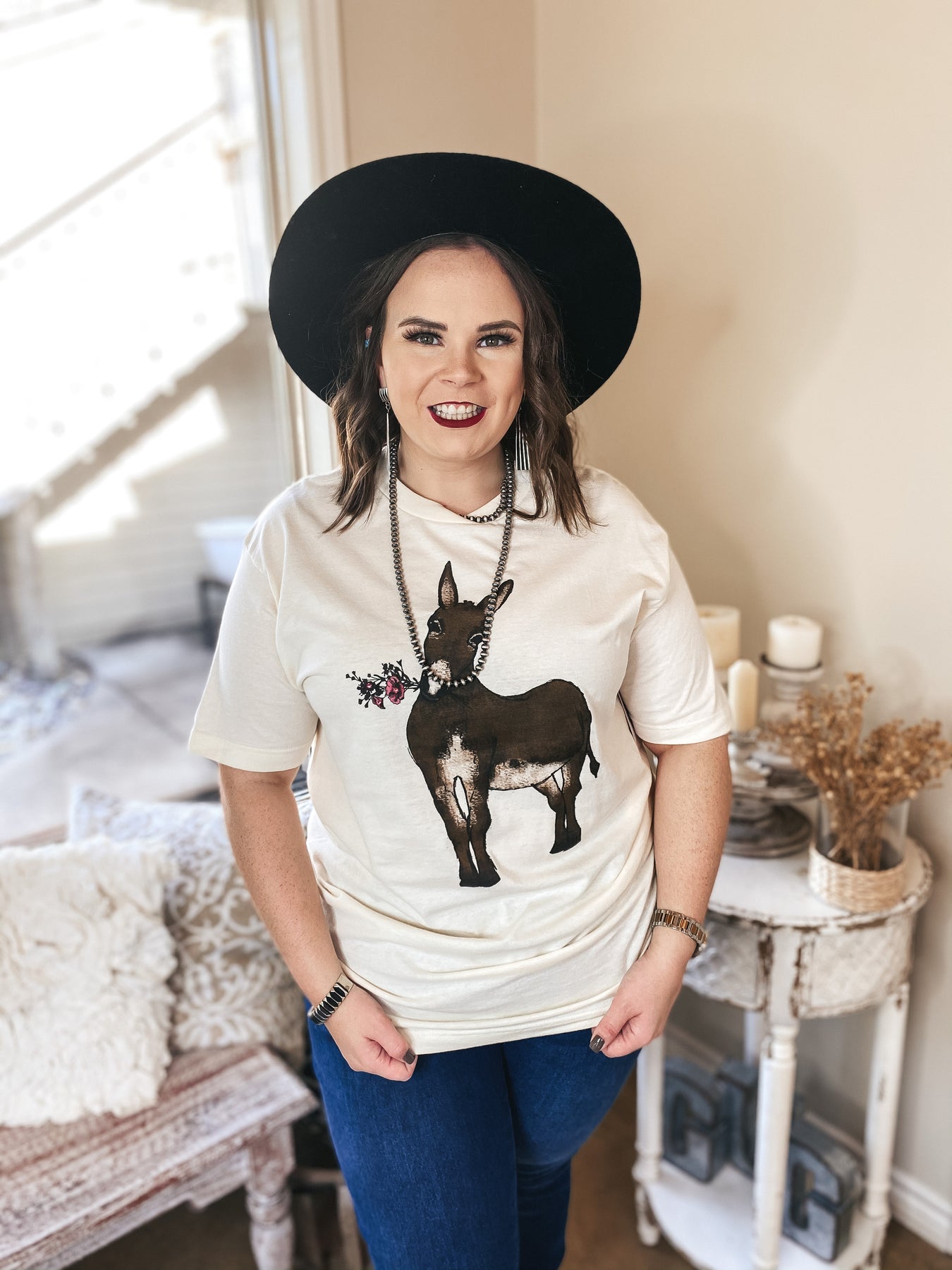Bouquet Burro Graphic Tee with Pink Crystal Accents in Ivory - Giddy Up Glamour Boutique