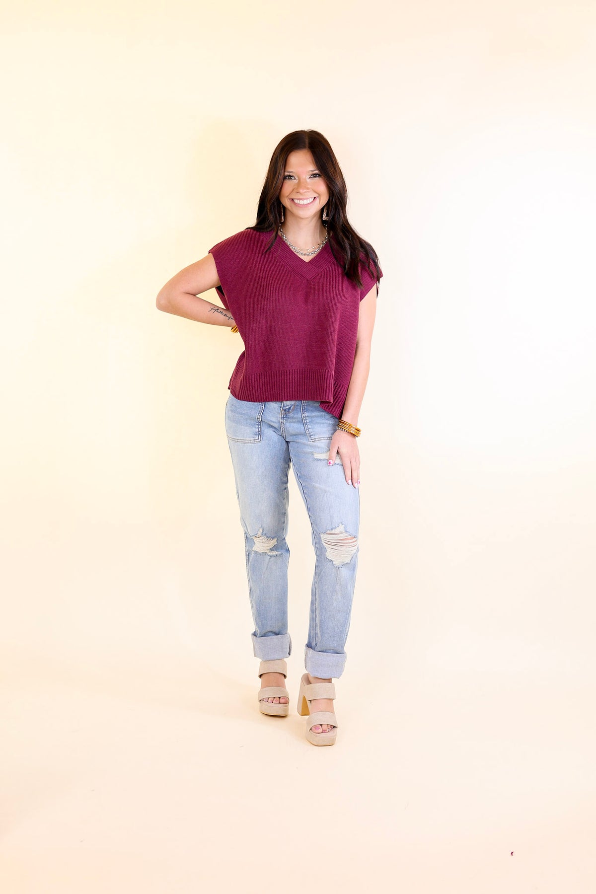 Chic Layers Cap Sleeve V Neck Sweater in Maroon