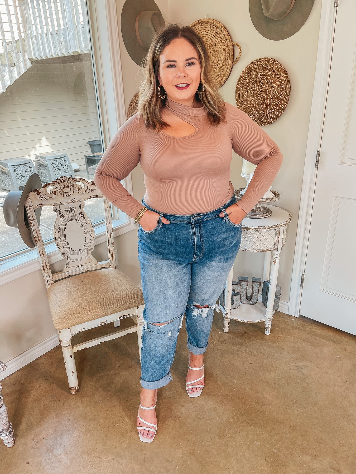 From the gym, to the couch, to a night on the town, this top is the perfect piece for you! It includes a cut out neck, ribbed material, long sleeves, and lots of stretch! We are obsessed with the stylish comfort that these tops offer.