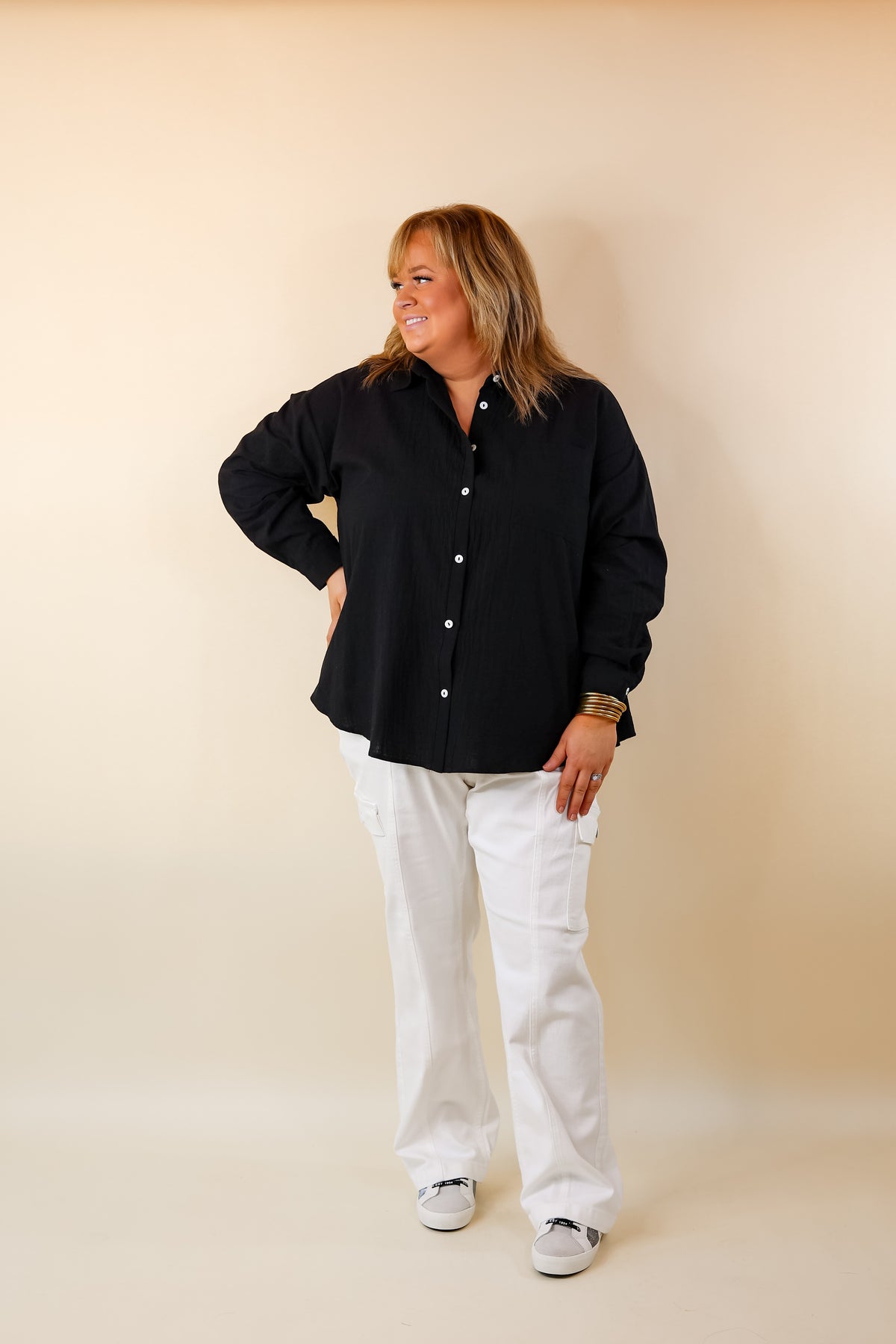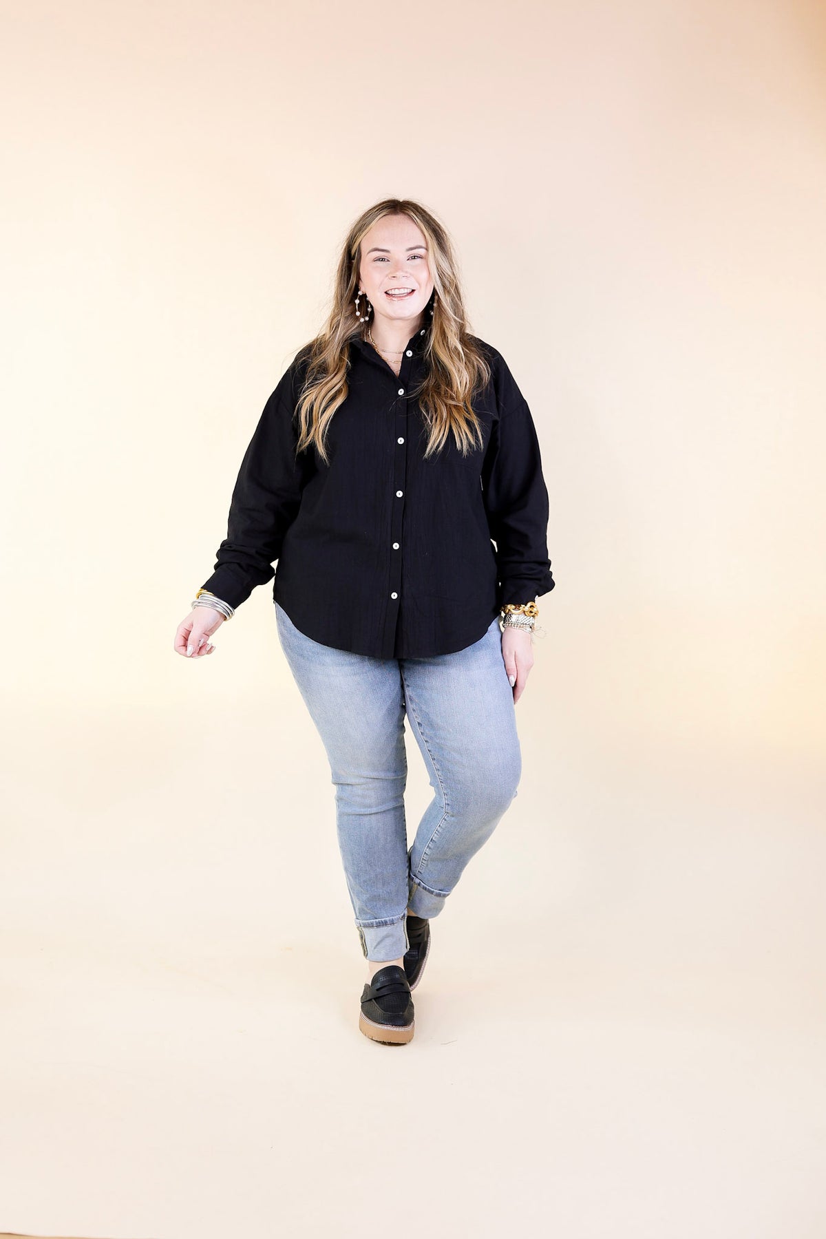 Don't Let Me Down Button Up Long Sleeve Top in Black