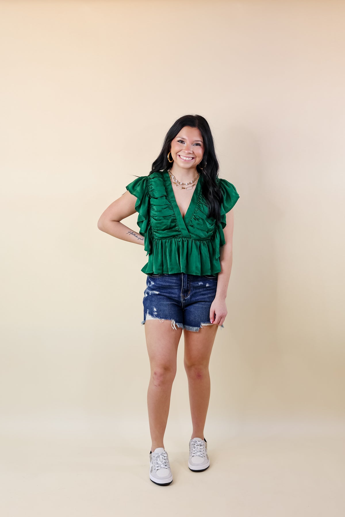 Fresh Take Ruched V Neck Crop Top in Green - Giddy Up Glamour Boutique