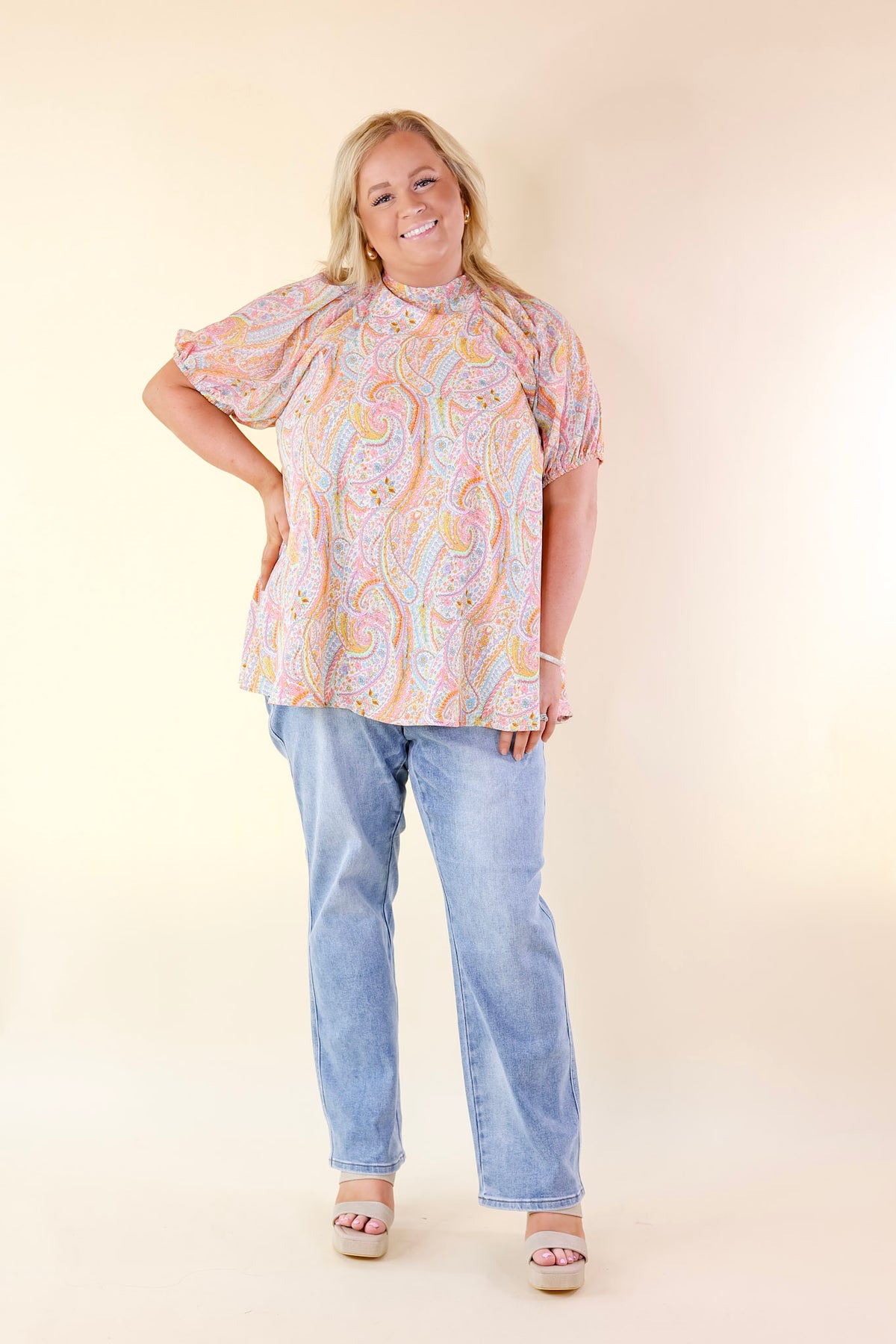 Be stylishly chic in this Malibu Pier top. It features pastel-hued paisley details, an open back with a tie, and short sleeves. Its simple yet beautiful design makes it a perfect statement piece for any summer-ready wardrobe.