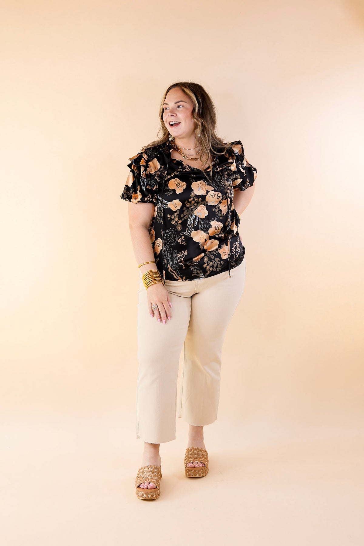 One And Only Mix Print Satin Blouse with Keyhole Front in Black - Giddy Up Glamour Boutique