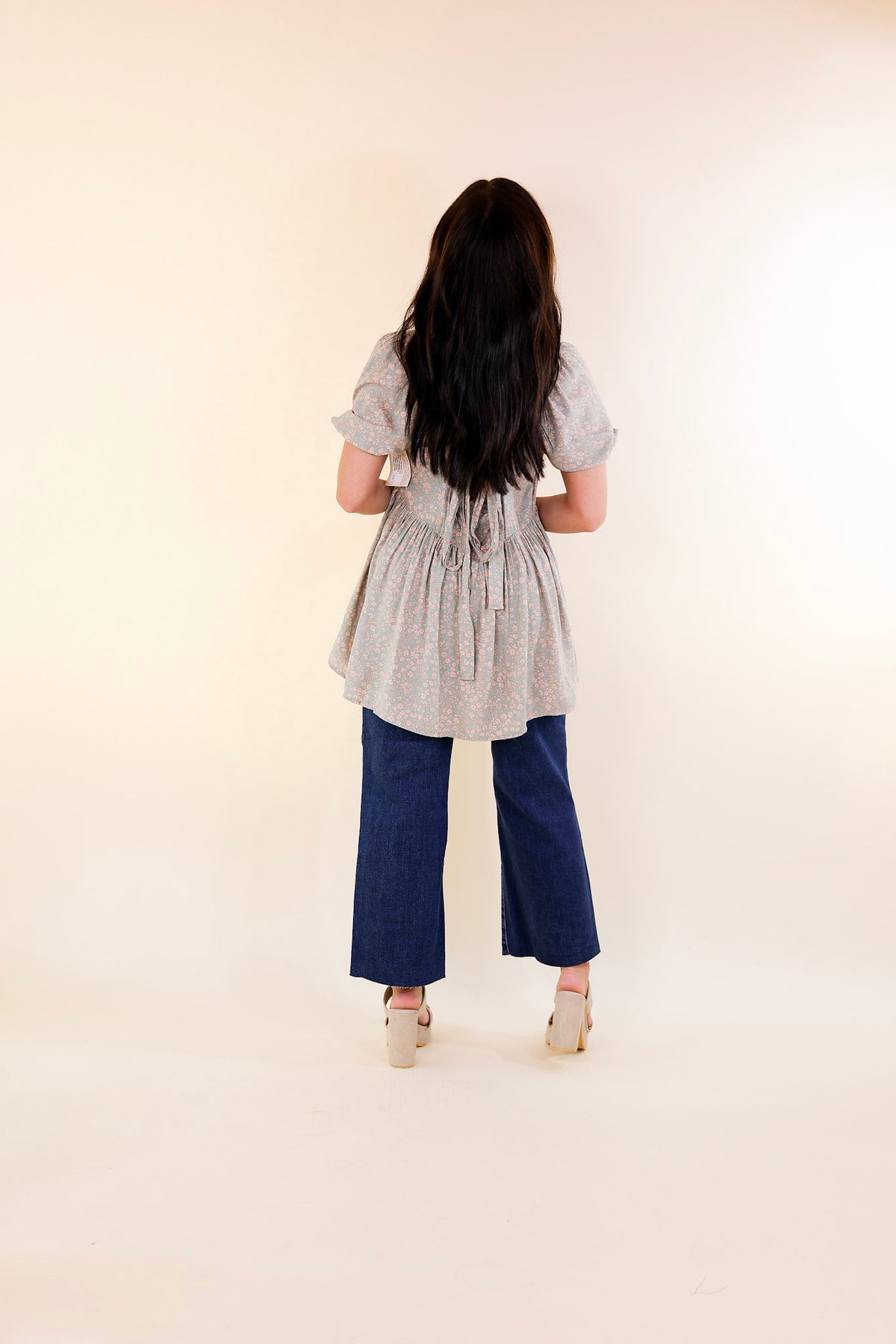 Tell Me I'm Dreaming Corset Back Floral Print Babydoll Top in Sage Green