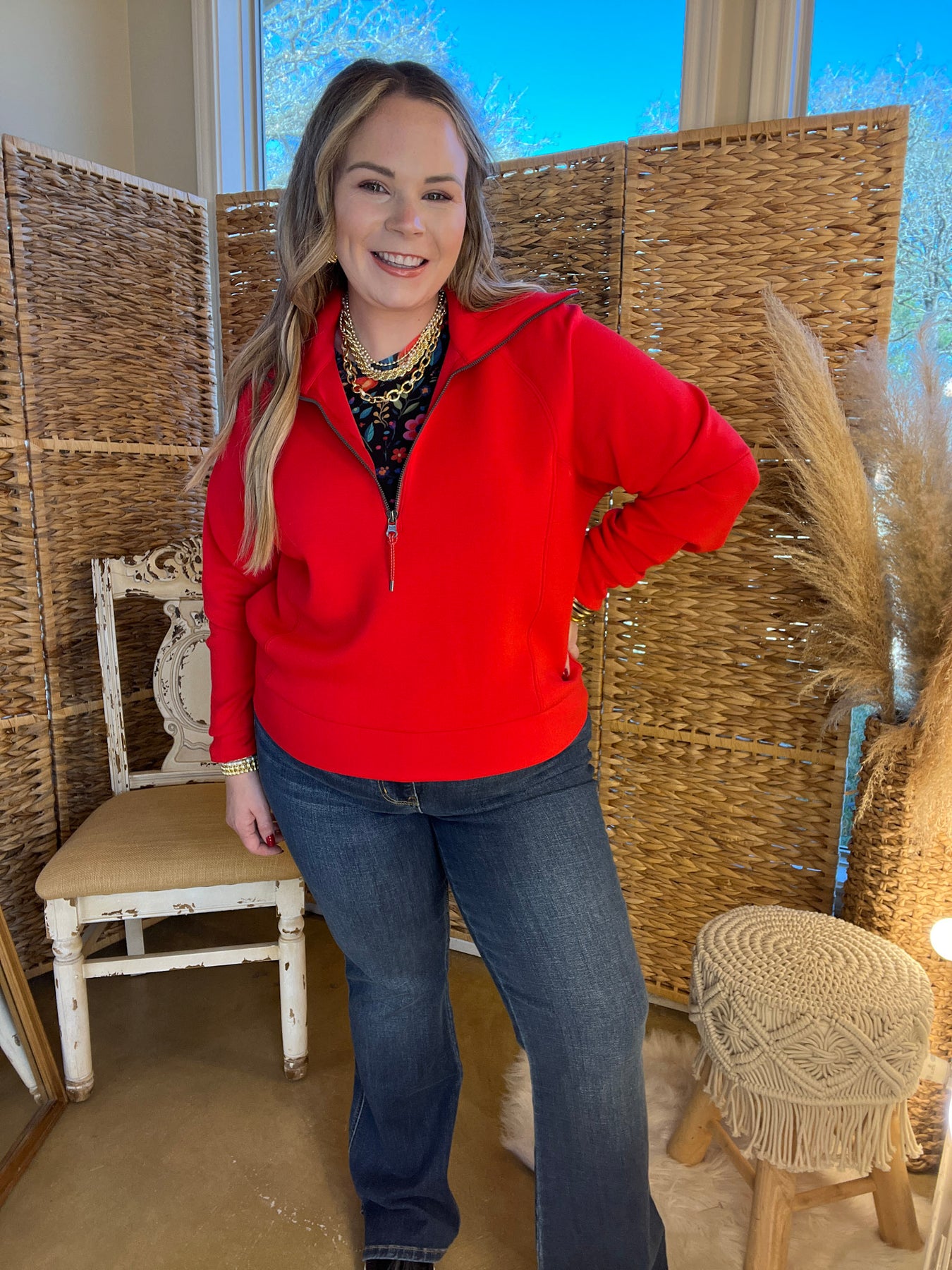 Model: Kristen is wearing a size small. Abby is wearing a size large. Nancy is wearing a size 2XL.