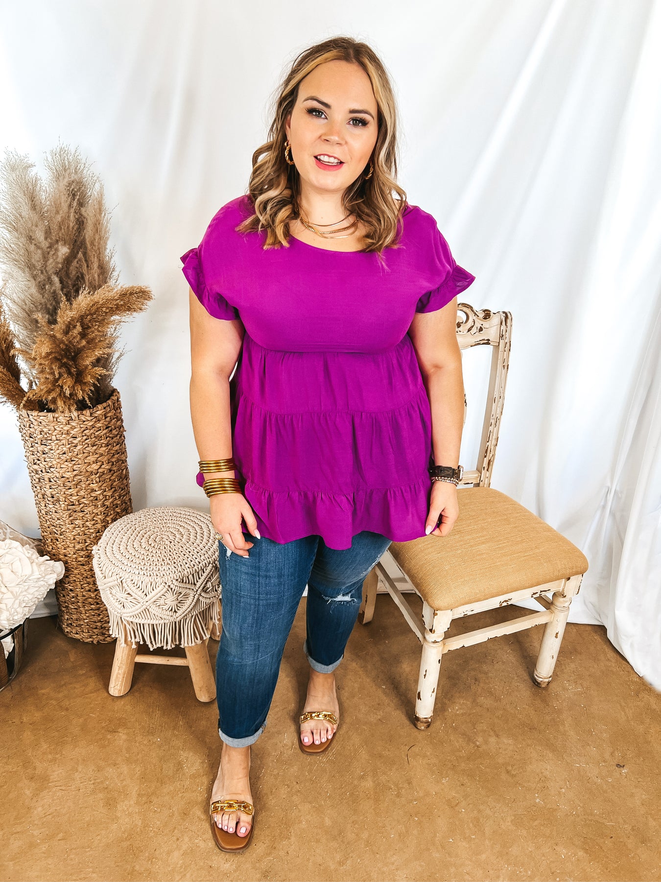 Last Chance Size Small and Medium | Belong To You Tiered Top with Ruffle Cap Sleeves in Magenta
