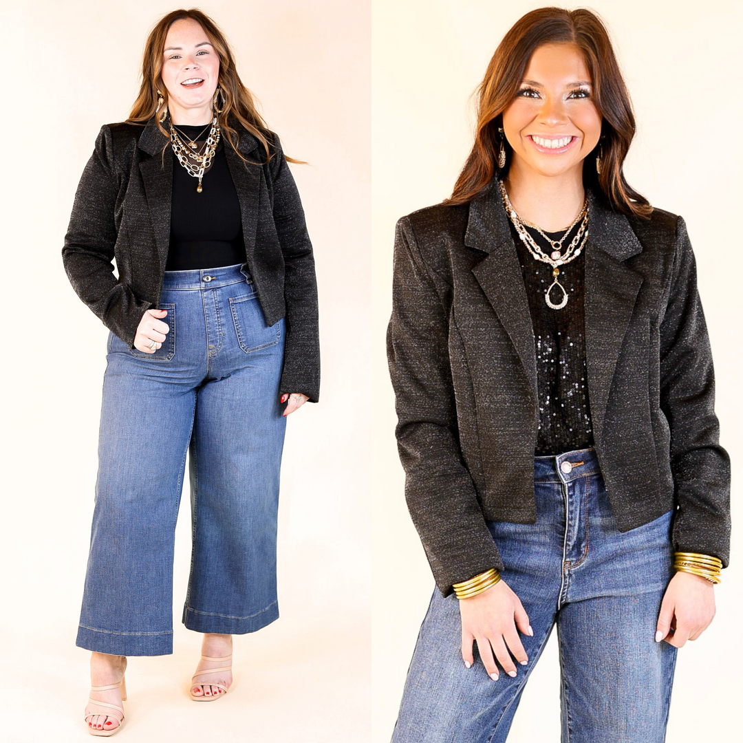 Encore Please Sparkle Cropped Blazer in Black