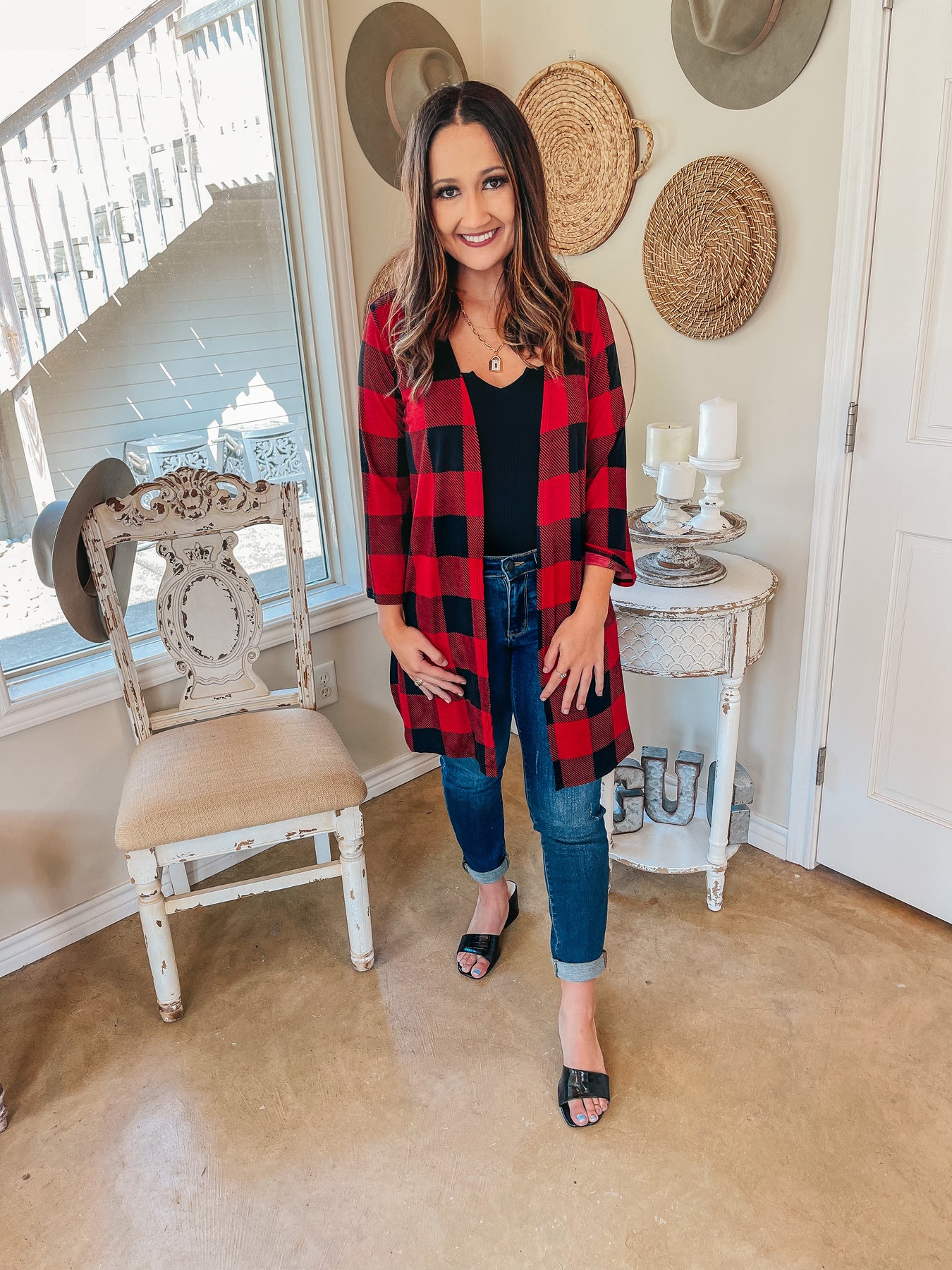 All Eyes On You Buffalo Plaid Cardigan in Red - Giddy Up Glamour Boutique