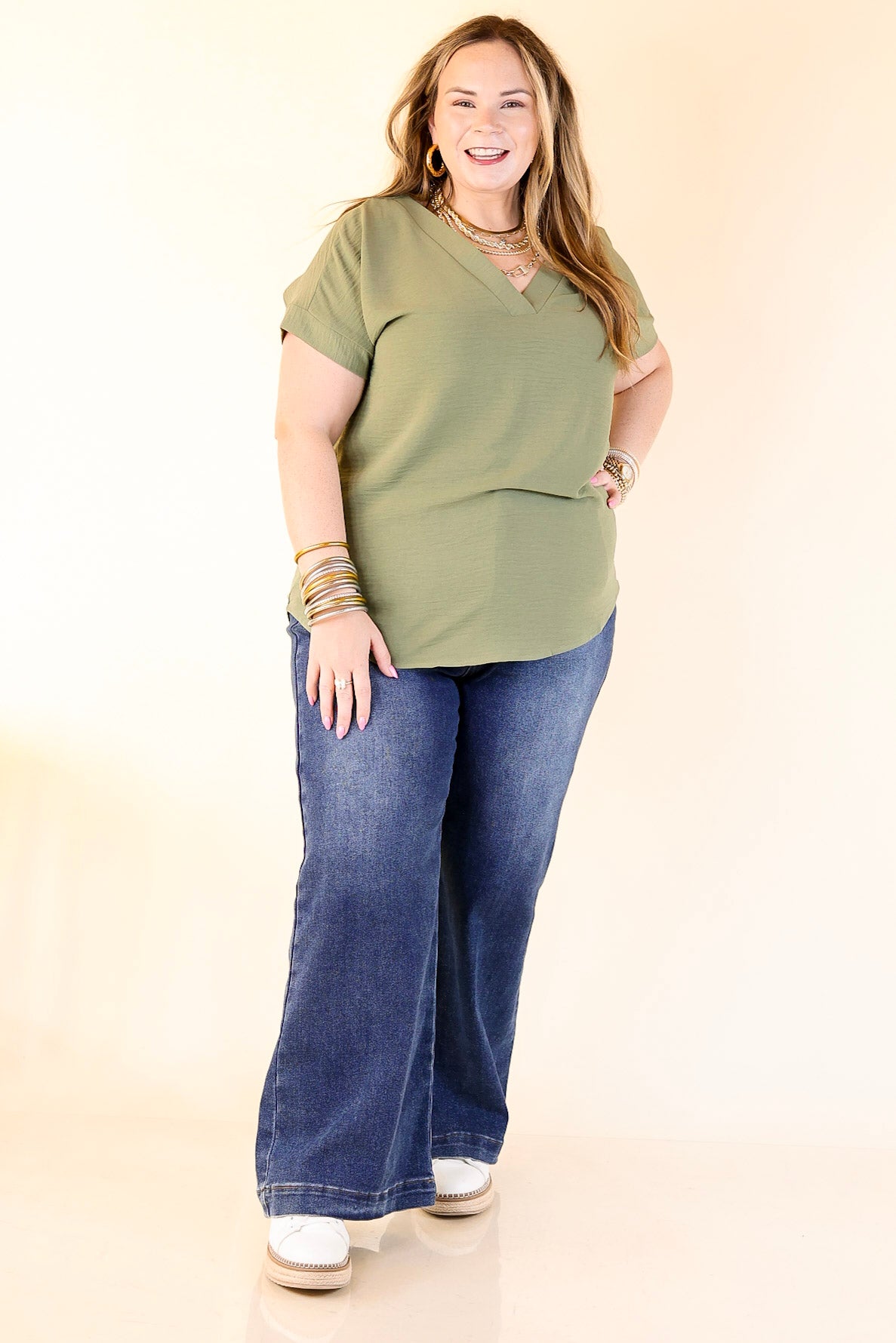 Cause To Celebrate V Neck Short Sleeve Top in Olive Green