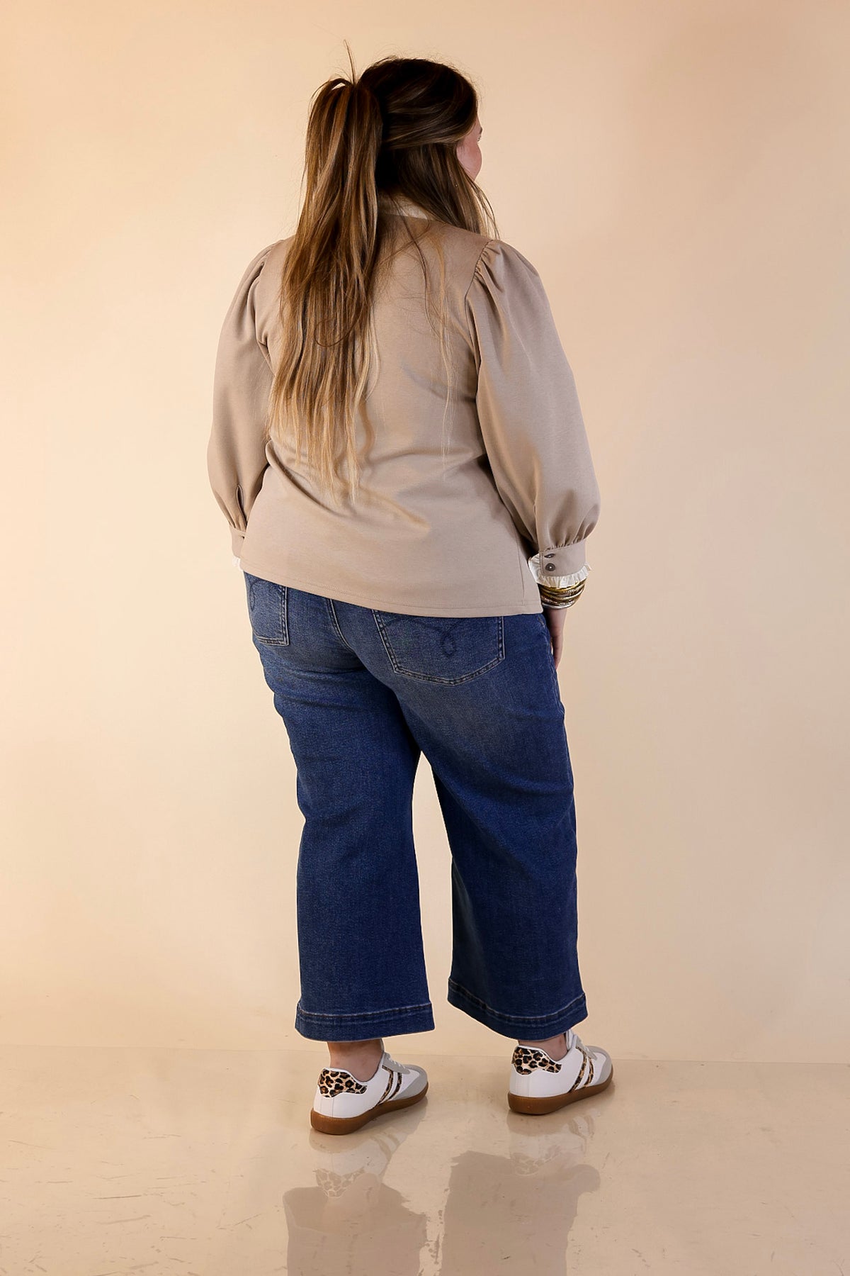 Refined Edge Puff 3/4 Sleeve Top with Collar Detailing in Sand