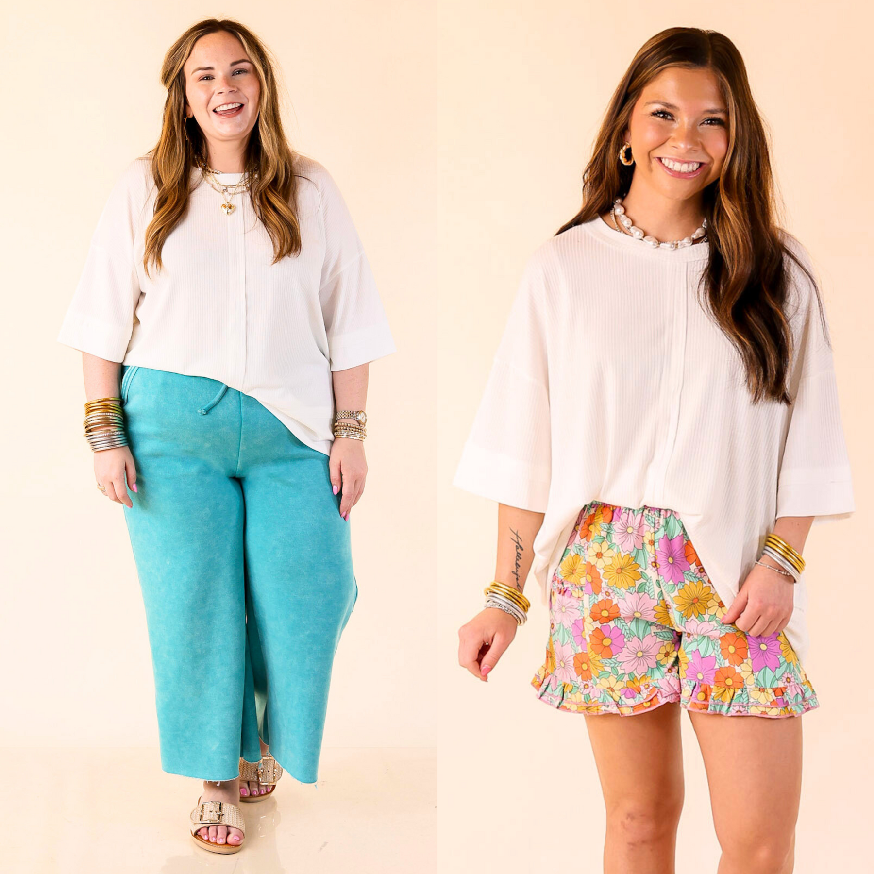 A little detail goes a long way. This effortlessly chic crew neck top features a relaxed fit, short sleeves, and seam detailing down the front for that just-right touch of interest. The extended hemline adds a flattering finish, making it the kind of basic that’s anything but. Dress it up, layer it, or keep it casual—this one’s made to move with you.