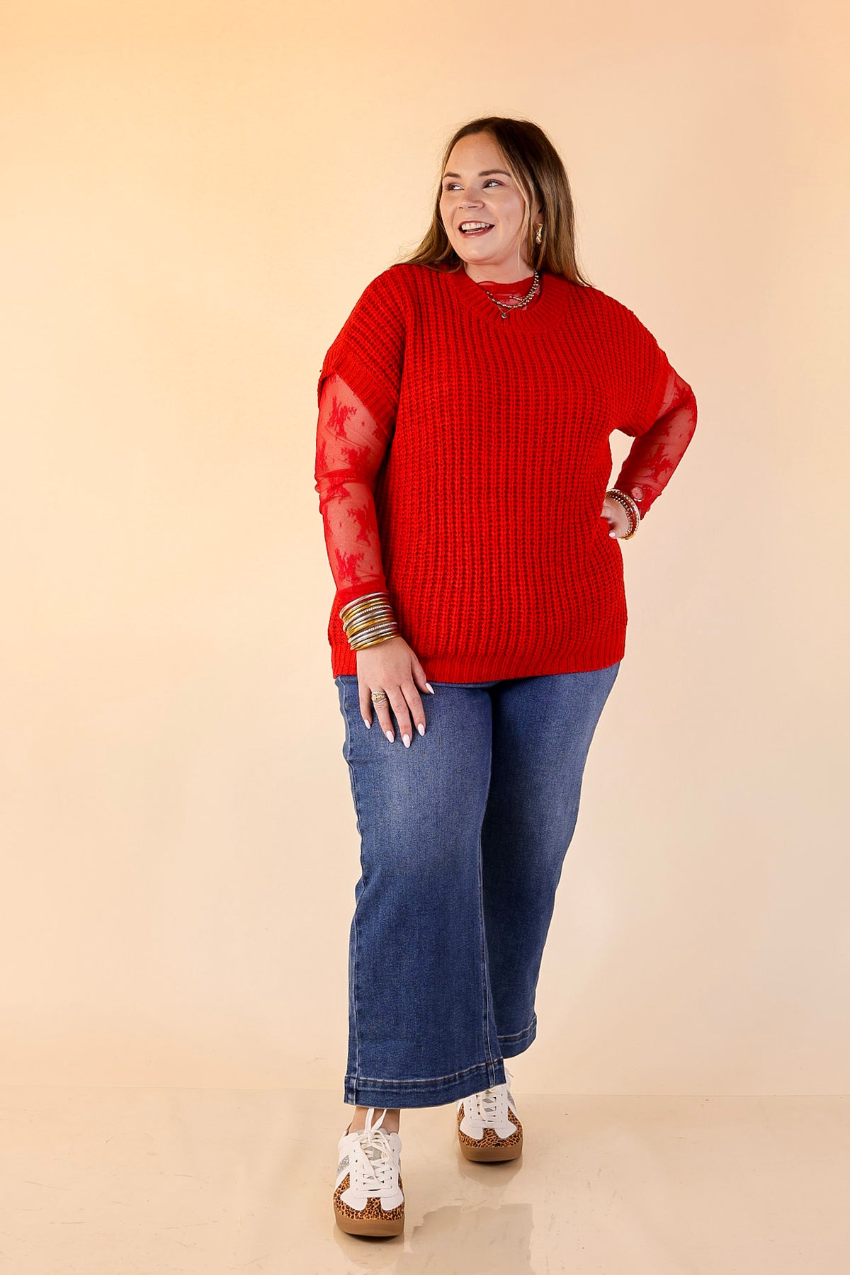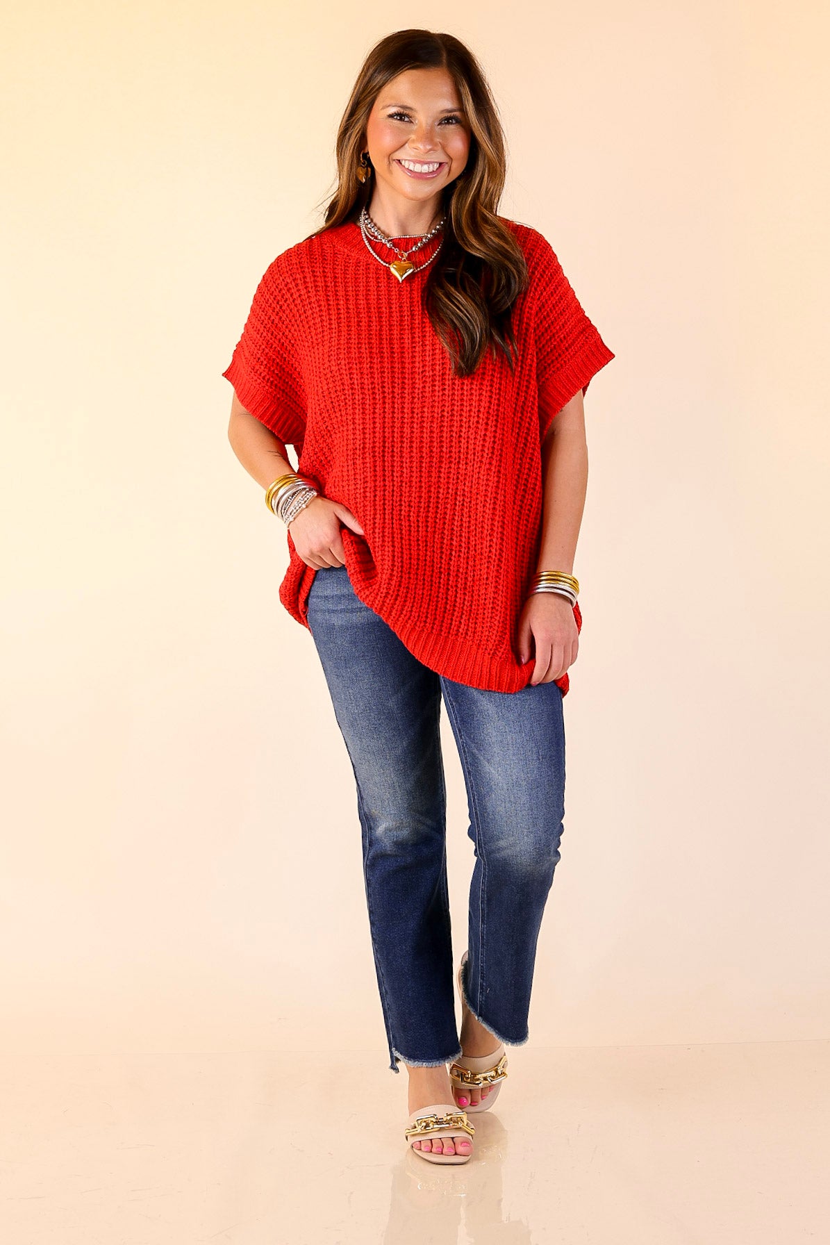 Tried and True Short Sleeve Oversized Knit Sweater in Red