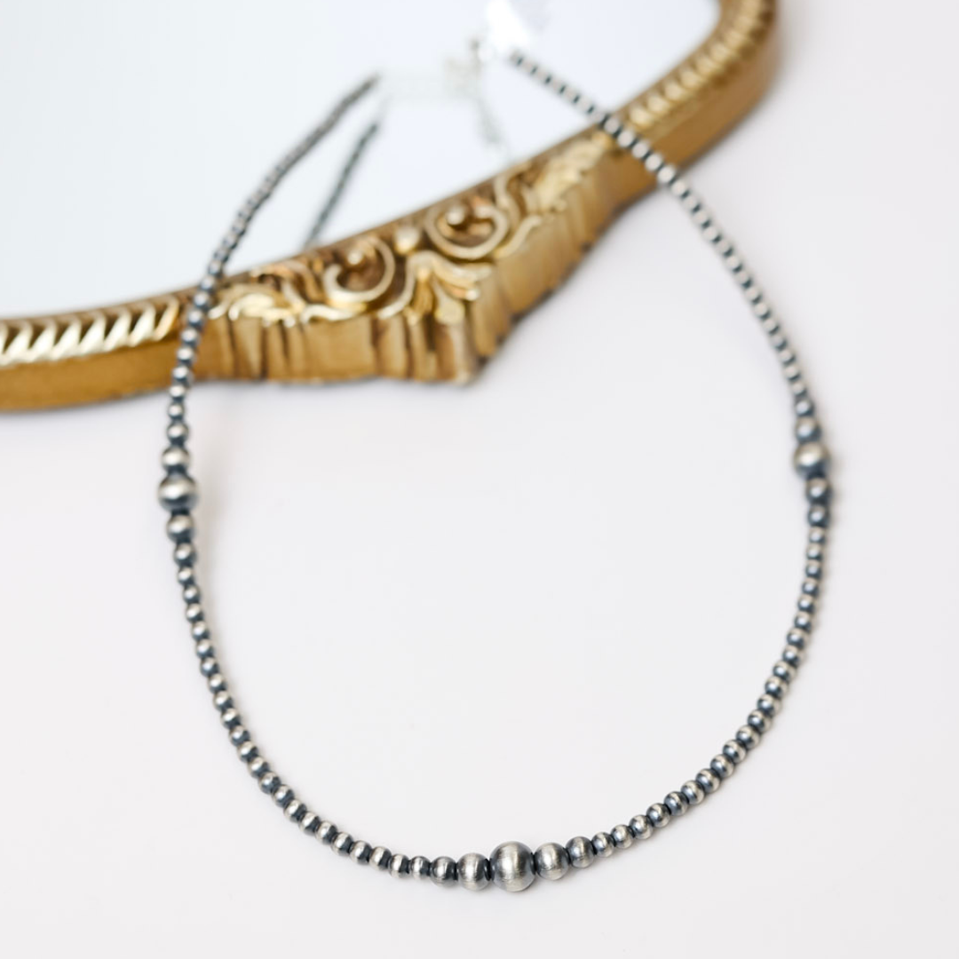 Handmade 4-8mm Graduated Multi Sized Sterling Silver Navajo Pearl Necklace | Varying Lengths