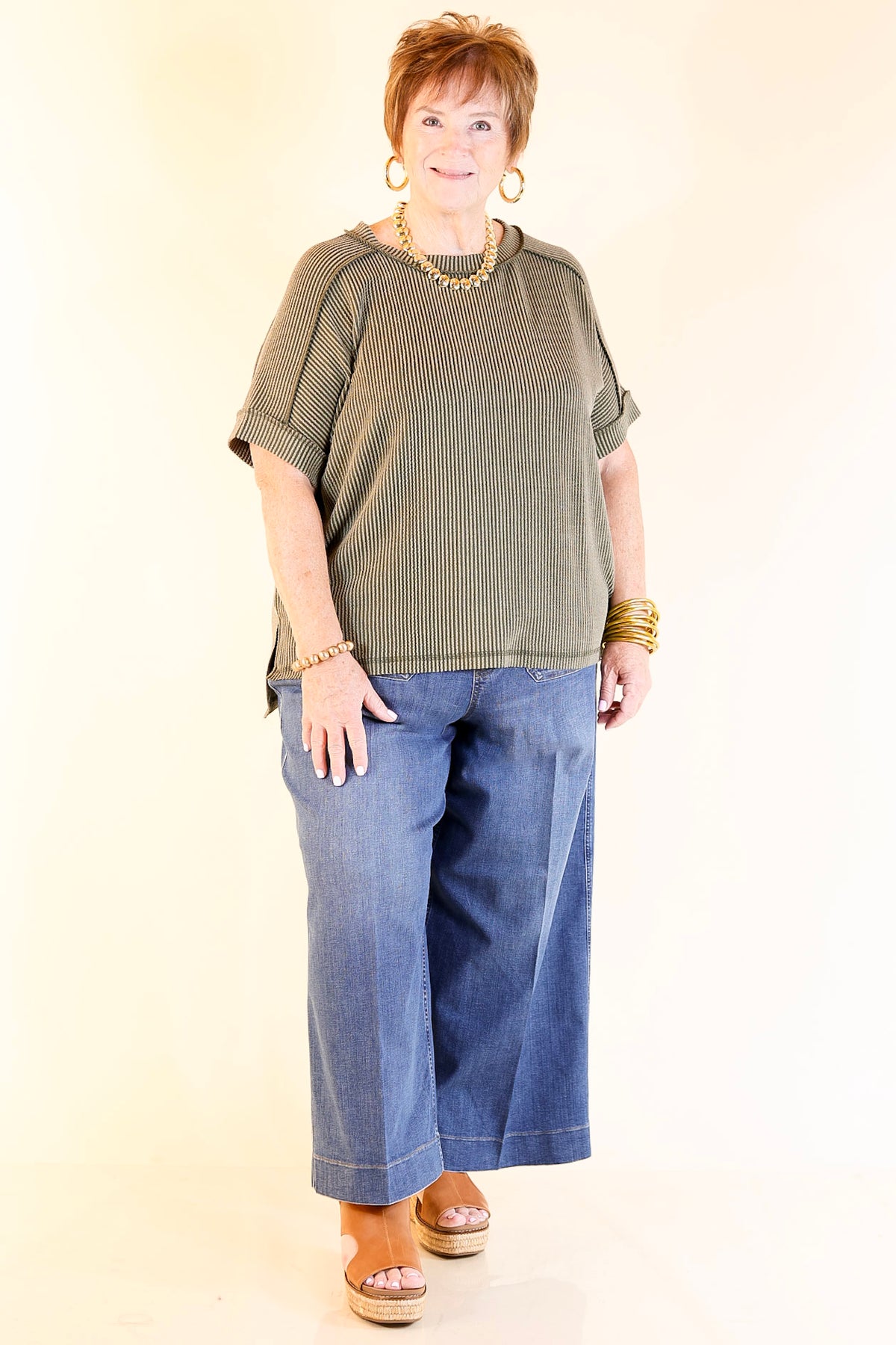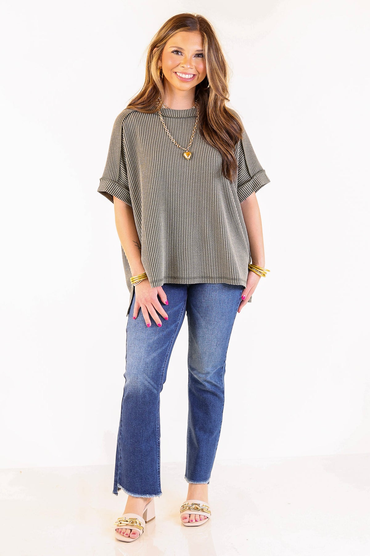 Daily Perfection Scoop Neck Short Sleeve Ribbed Top in Olive Green