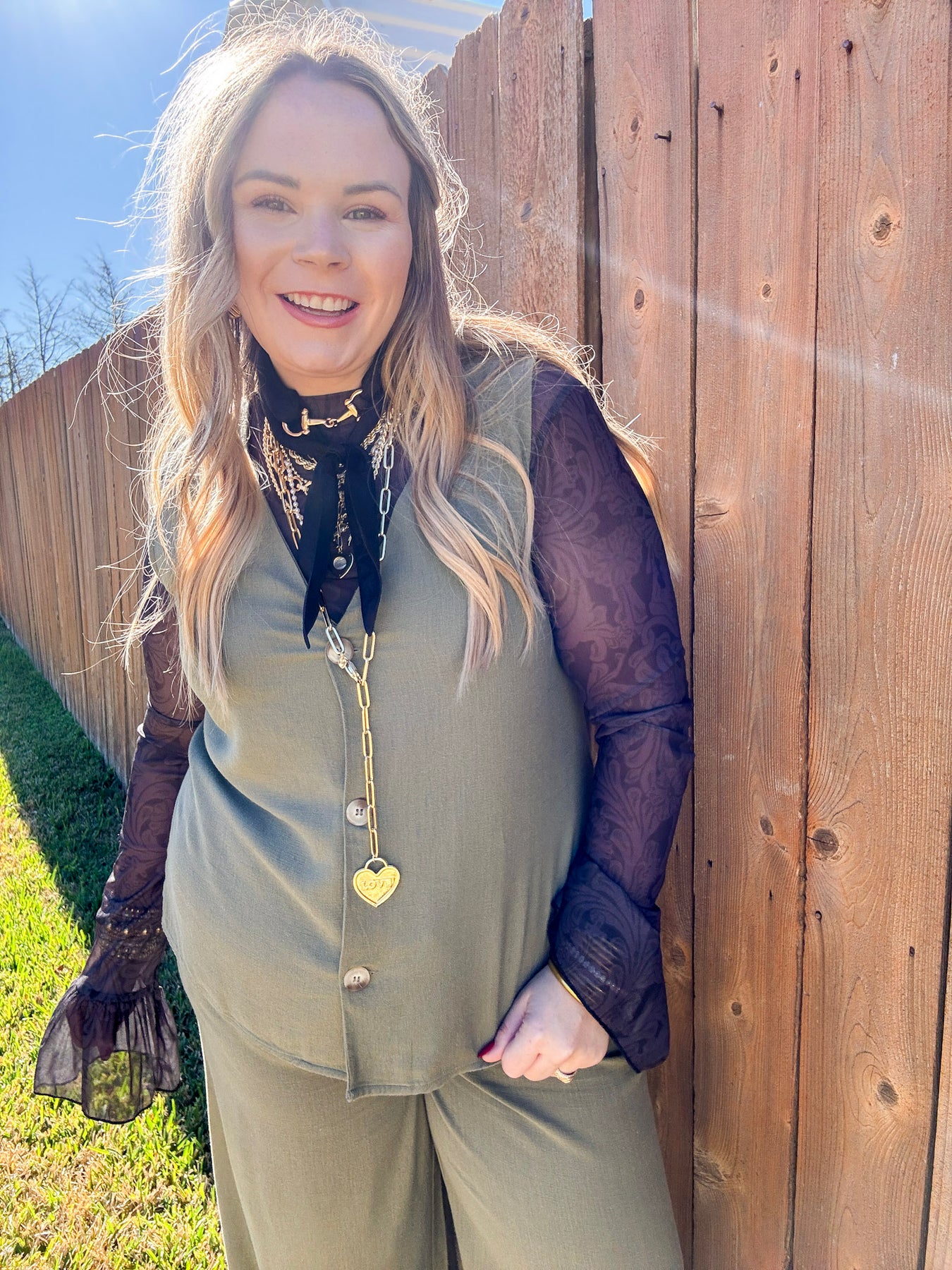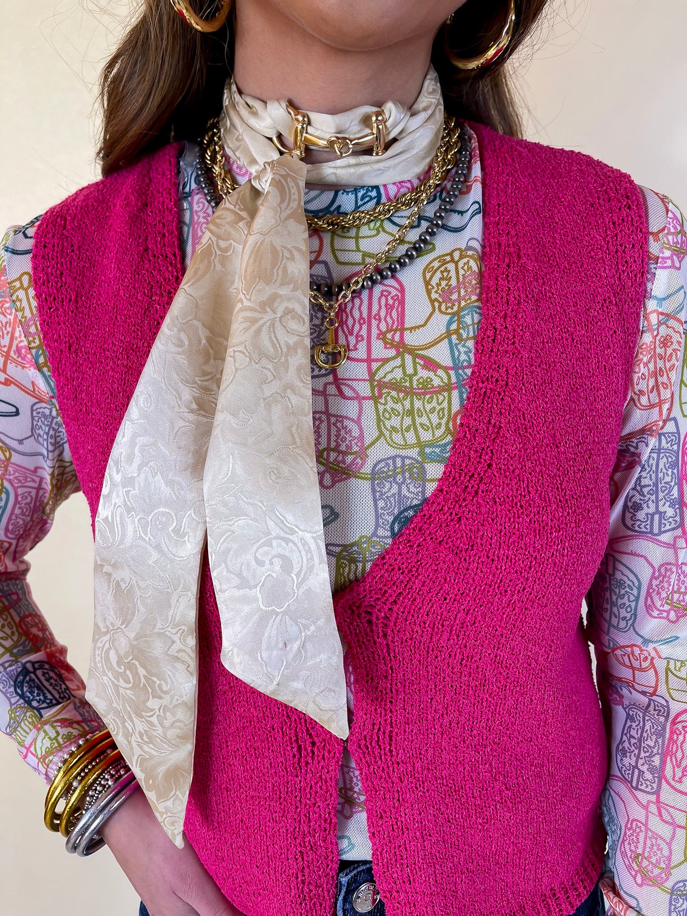 The Bridle & Brass Snaffle Bit Scarf Slide is the definition of polished western style. Designed to elevate your favorite twilly or scarf, this gold-toned snaffle bit charm adds just the right amount of equestrian-inspired elegance. Slip it on to secure your scarf in place or let it serve as a refined finishing touch—perfect for dressing up everyday looks or completing a statement outfit. Classic, versatile, and endlessly chic, this piece pairs beautifully with everything from florals to neutrals.