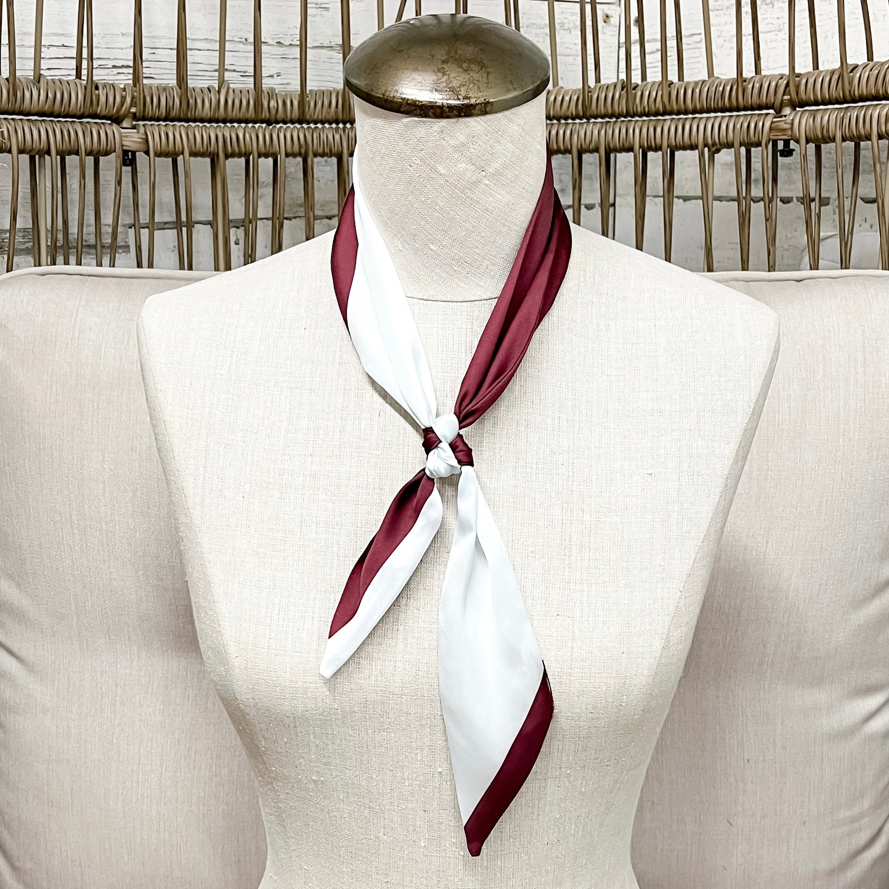 Add a touch of effortless style with our Game Day Glam Twilly! This maroon and white silky scarf is the ultimate accessory—wear it around your neck, tie it in your hair, or add as a bow to your purse or boots. At 34" long, it’s the perfect pop of team spirit and classic chic all in one.