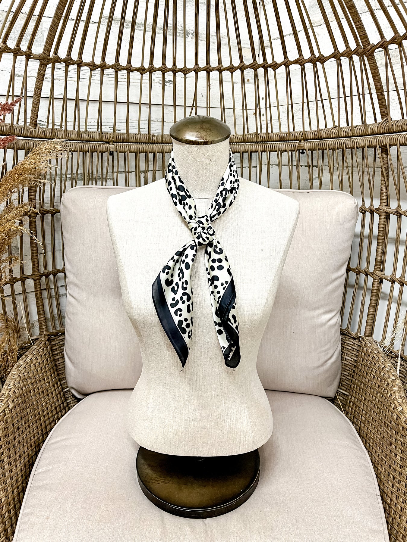Add a touch of wild sophistication with our Wild Elegance Scarf! Featuring a chic black and ivory leopard print with a sleek black border, this silky square scarf is a timeless must-have for every wardrobe. Whether you’re dressing up denim or layering it with neutrals, it gives that perfect blend of classic and bold.
