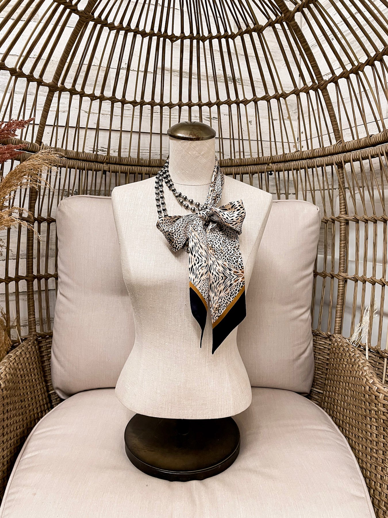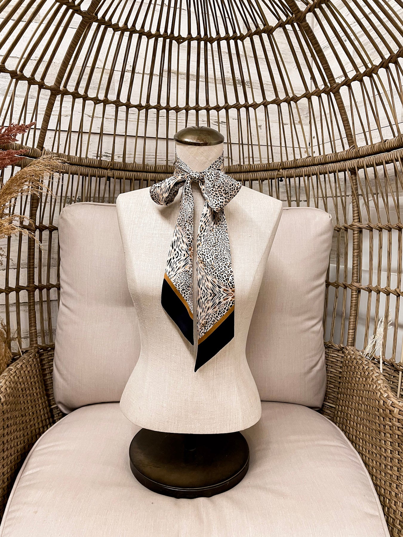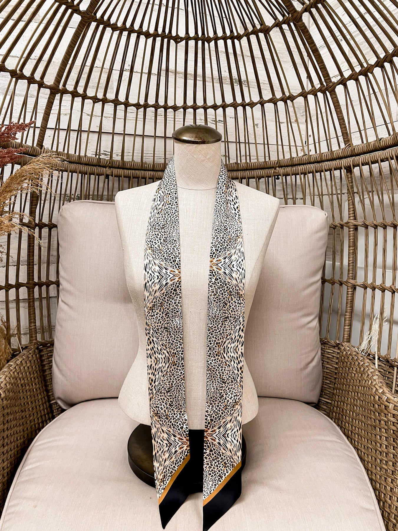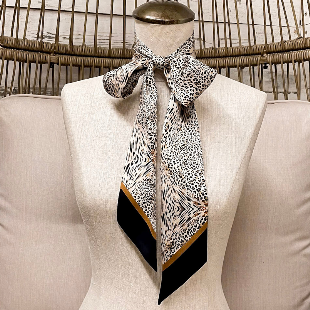 The Leopard Silk Twilly Scarf by Wyoming Traders is a timeless statement with just the right amount of edge. Featuring a classic leopard print accented with a bold contrast border, this twilly brings effortless sophistication to both casual and dressed-up looks.