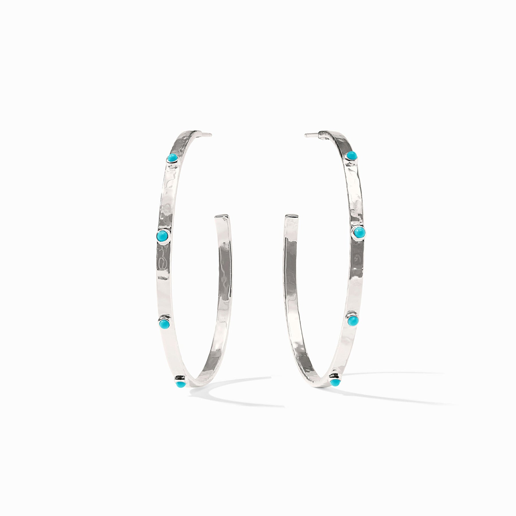 Julie Vos | Turquoise Blue Crescent Stone Hoop Earrings in Silver