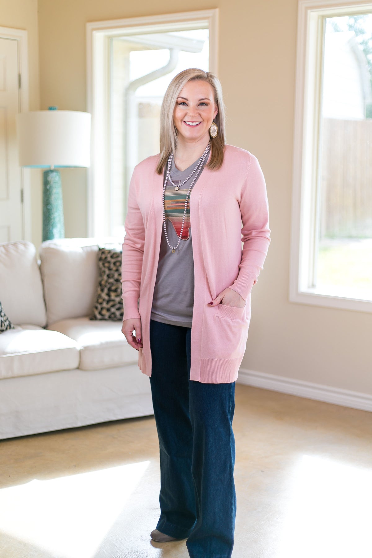 This super cute sangria serape print shape of Texas is handmade and hand stitched to the tee shirt right here in the great state of Texas. The tee shirt features a v neckline and short sleeves. Mallory is wearing size small.