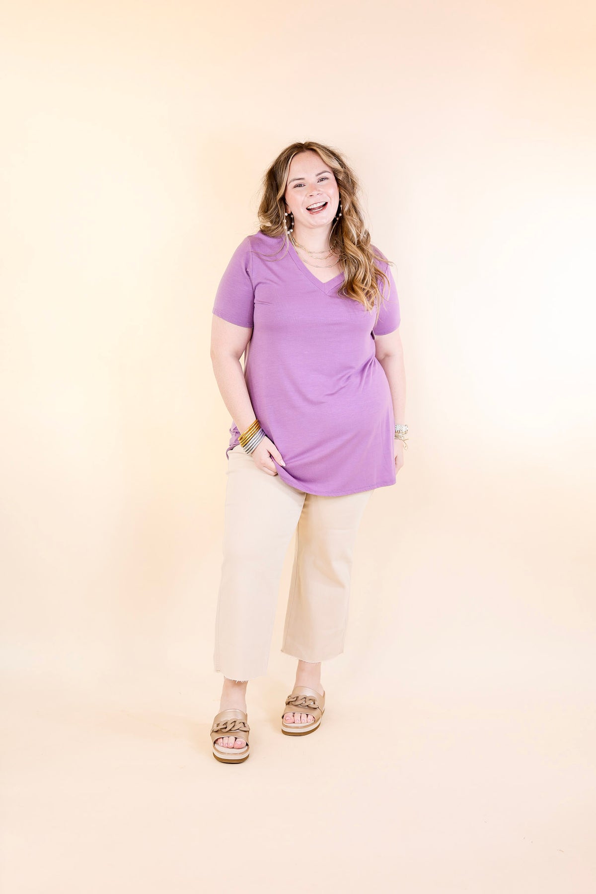 Last Chance Size Small, Medium & 3XL | It's That Simple Solid V Neck Tee in Dusty Lavender