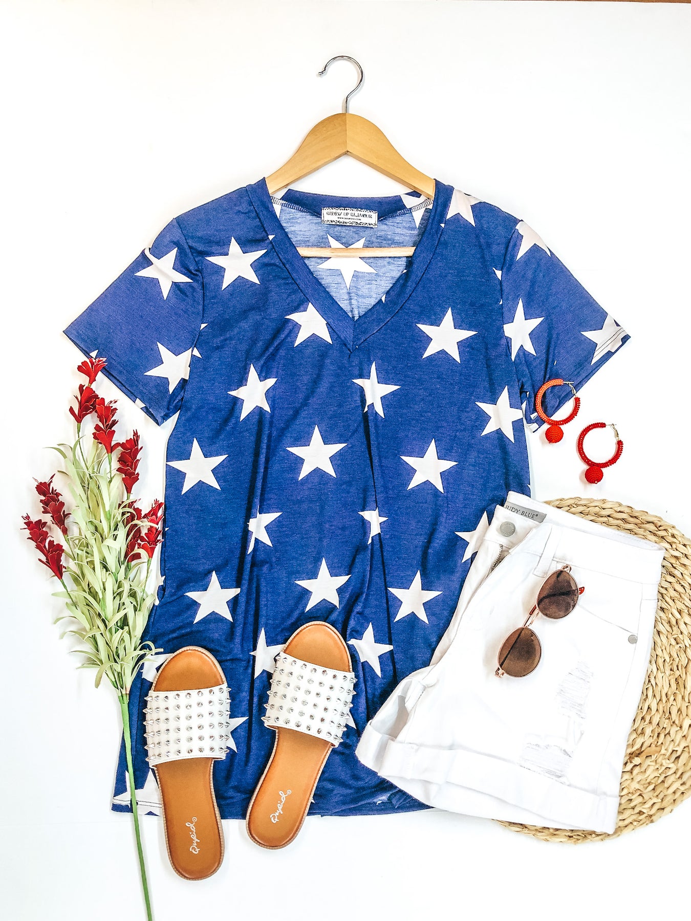 Although we are keeping things simple, this top still gives us so much style! This top includes short sleeves, a v-neckline, a cute Star print, and a comfy Bulgarian fabric. The white stars stands out beautifully on the navy background. Pair this with your favorite skinnies or a pair of cut offs!