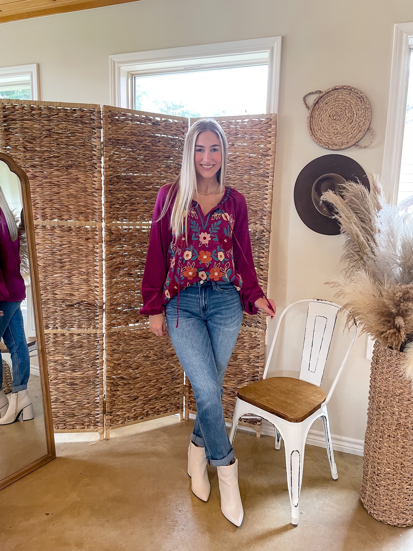 Last Chance Size Small | Savanna Jane | These Are The Days Long Sleeve Floral Embroidered Top in Magenta