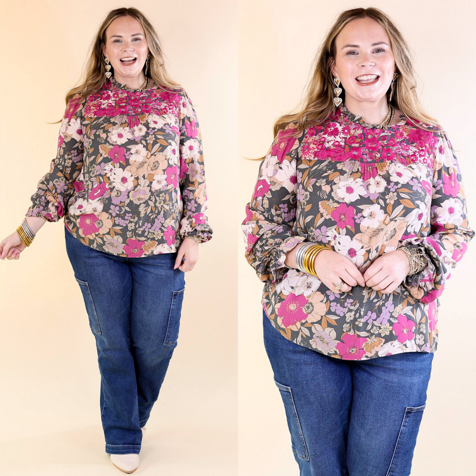 Our My Dearest Darling Floral Embroidered Long Sleeve is the perfect way to make a bold statement. With fuchsia floral embroidery and ruffle cuffs and neck giving off a romantic vibe, this top will make sure you stand out in a crowd! Dare to be different and make an unforgettable statement.