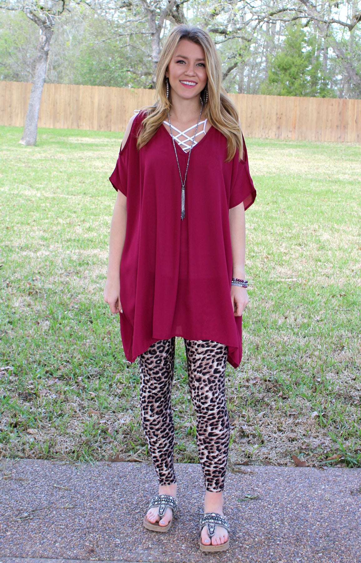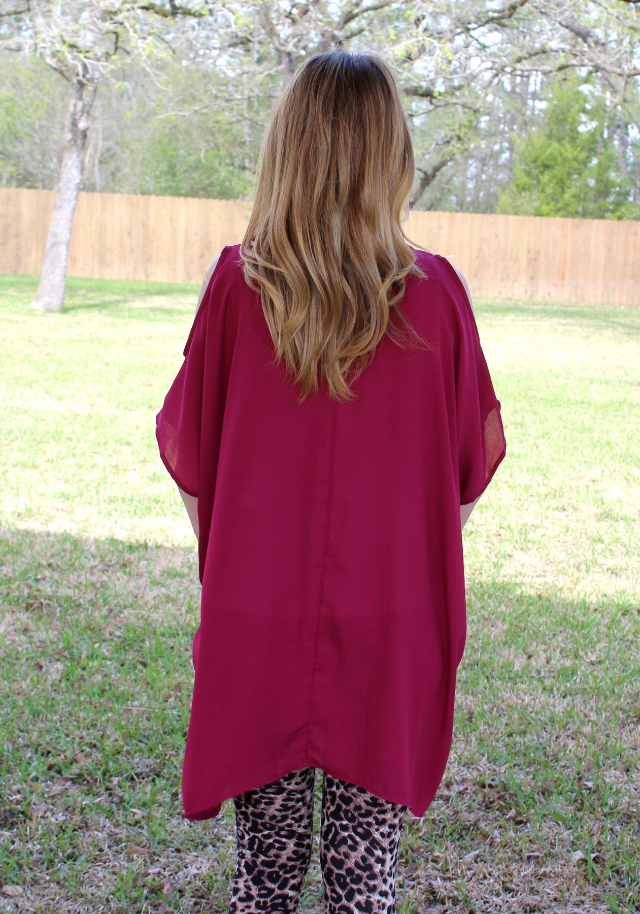 Pretty Little Thing Sheer Open Shoulder Tunic in Maroon