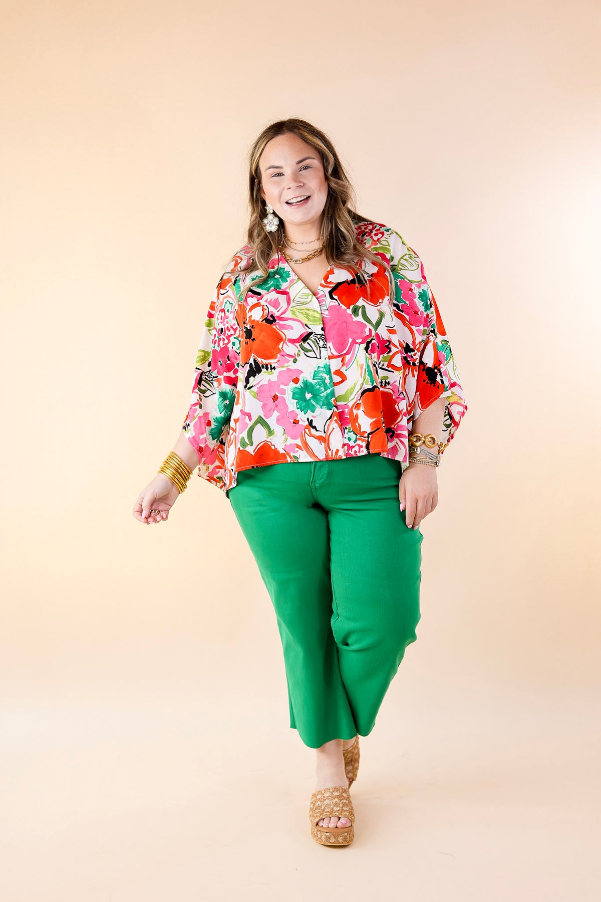 Sailing Away Floral Button Up Poncho Top in Red Mix