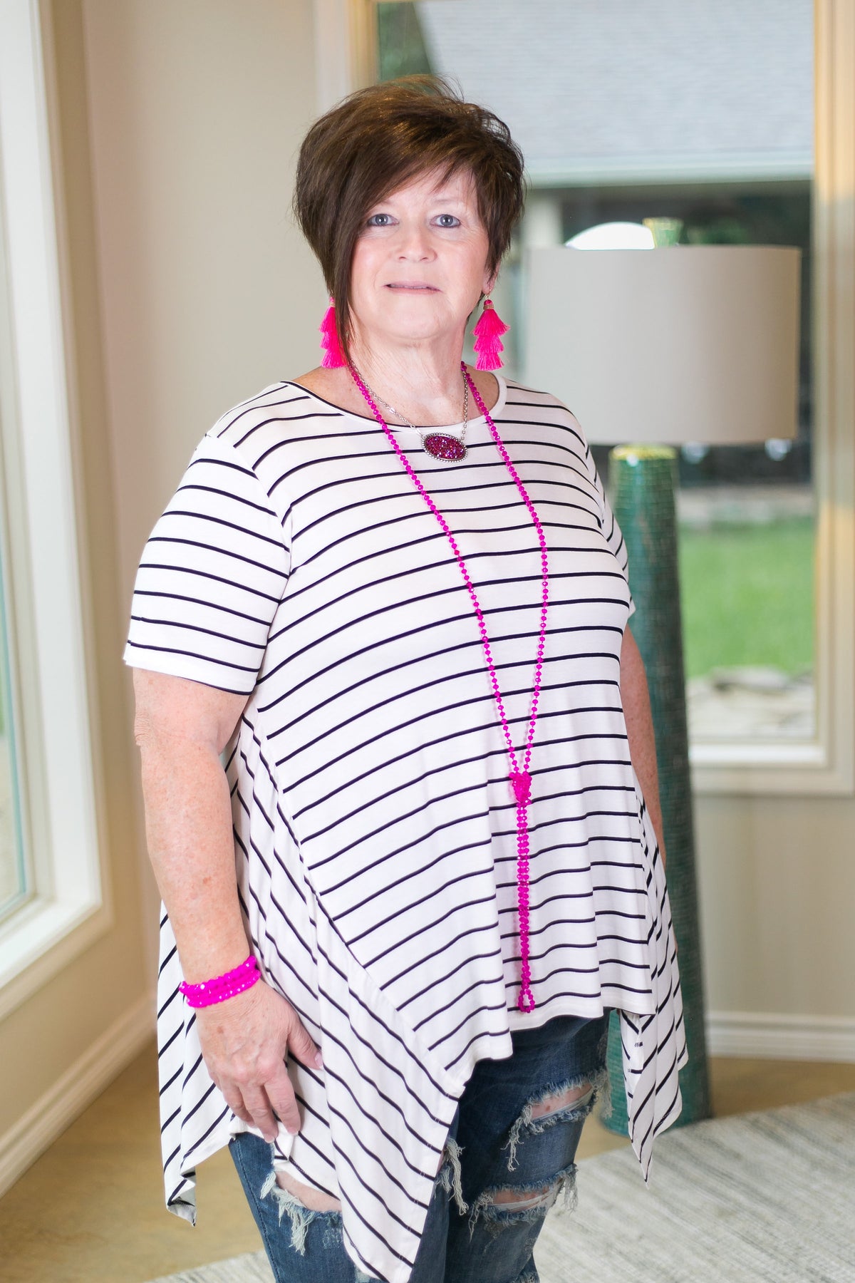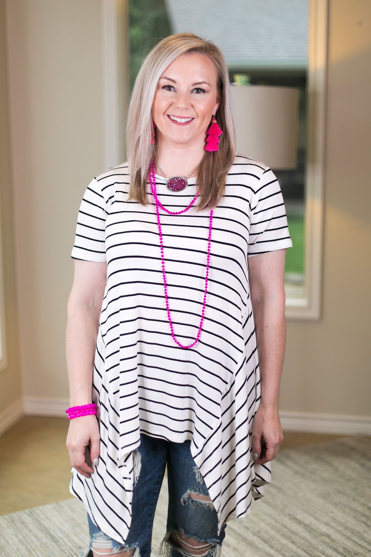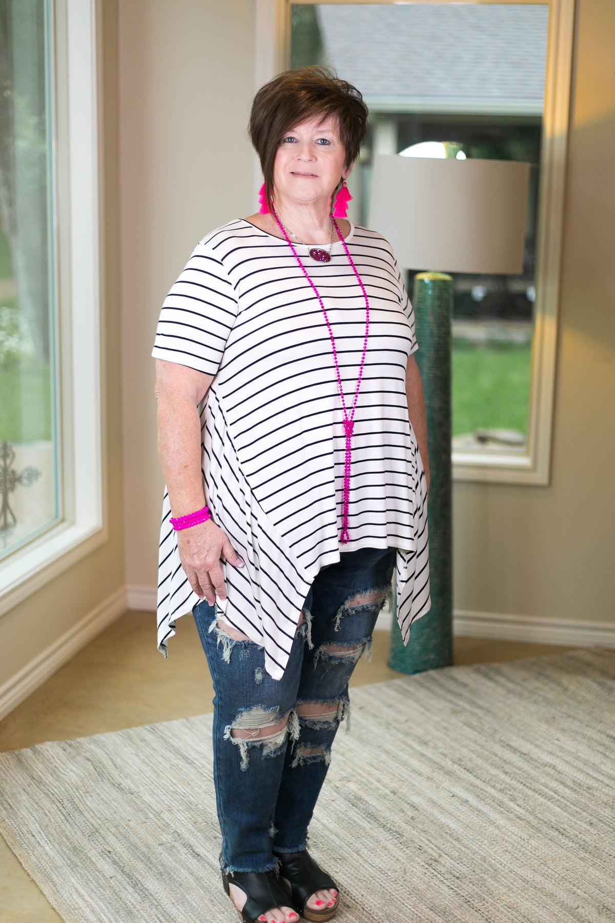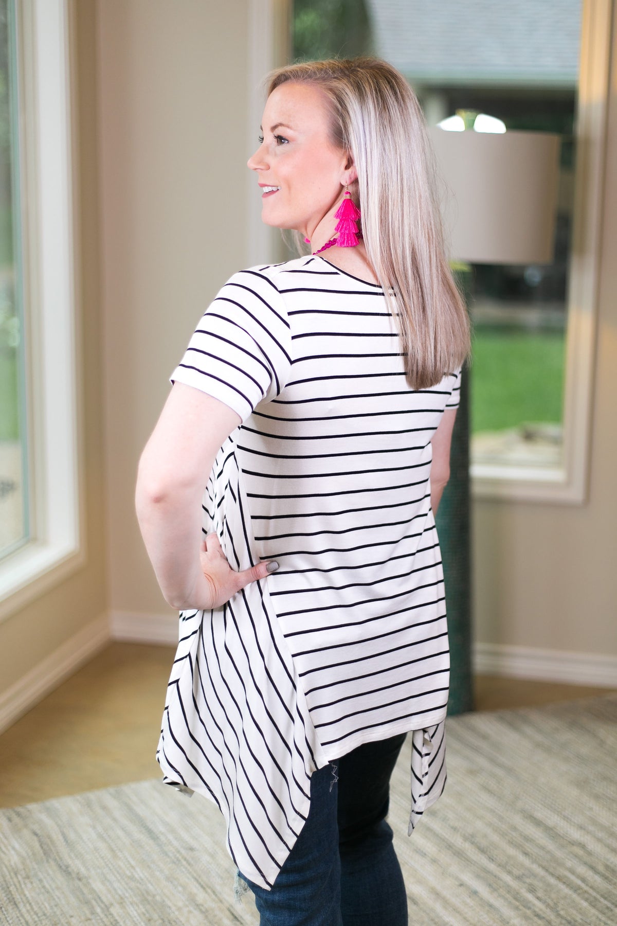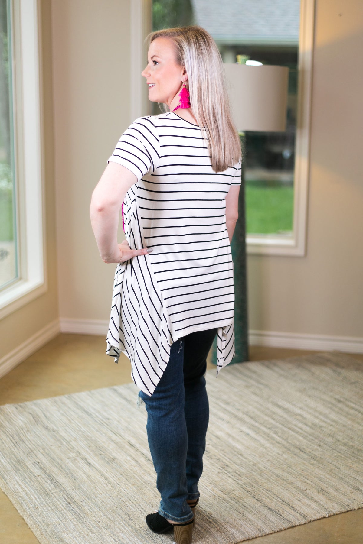 Simplified Style Striped Handkerchief Tunic Top in Ivory