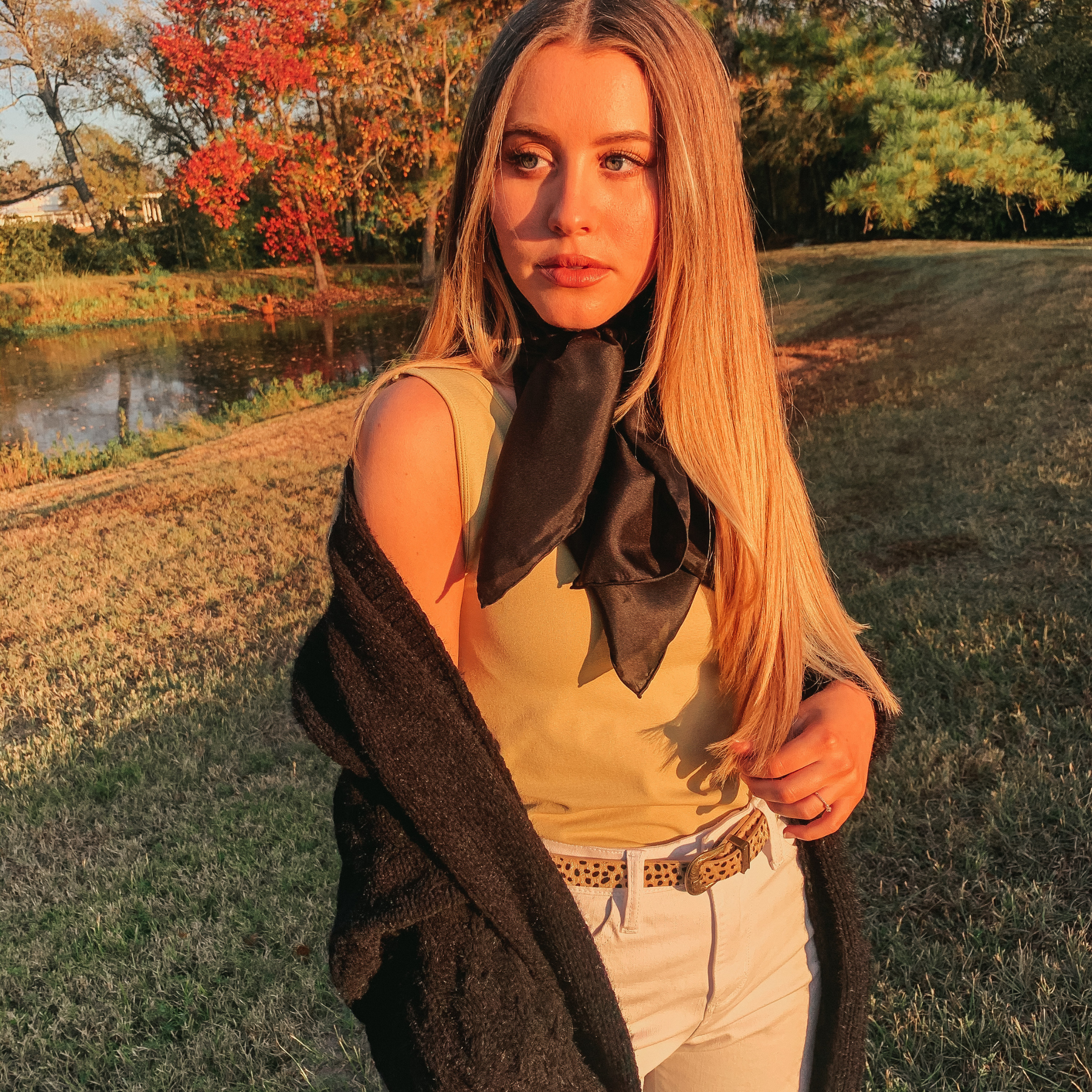 Our beautiful new line of wild rags are so fun and great for the upcoming seasons! Tie this in your hair, around your neck, or around your purse and you're set!