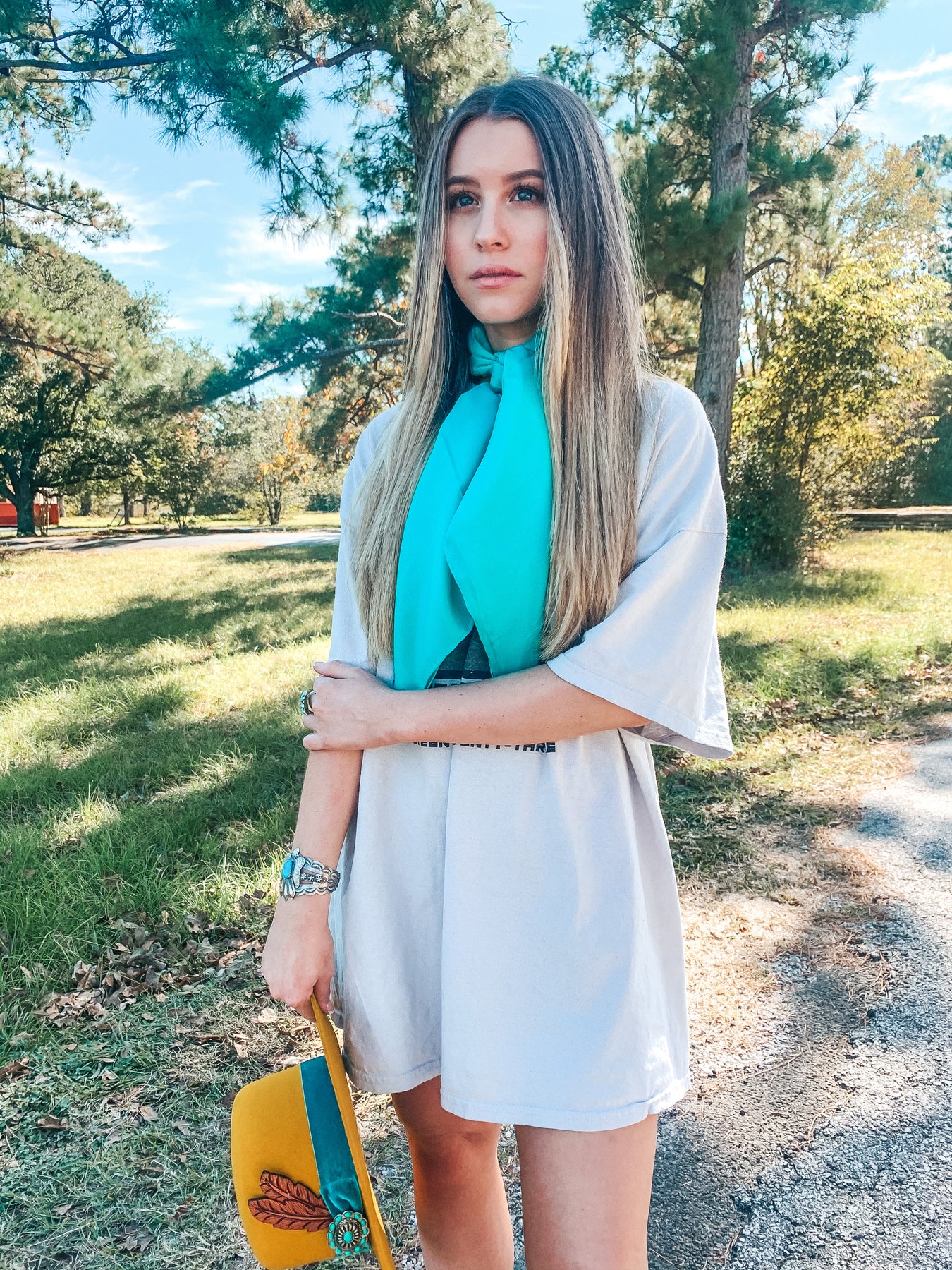 Our beautiful new line of wild rags are so fun and great for the upcoming seasons! Tie this in your hair, around your neck, or around your purse and you're set!