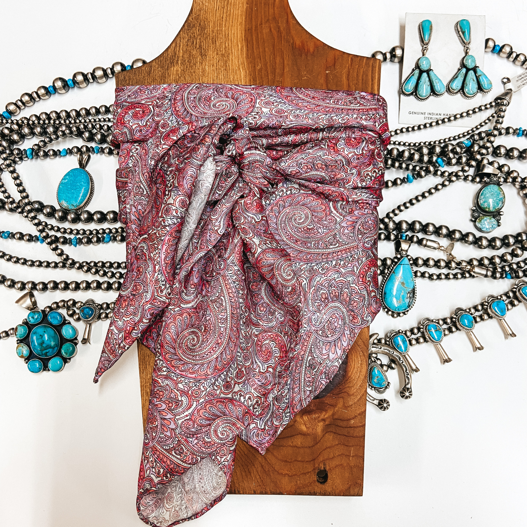Paisley Silk Wild Rag in Raspberry and White