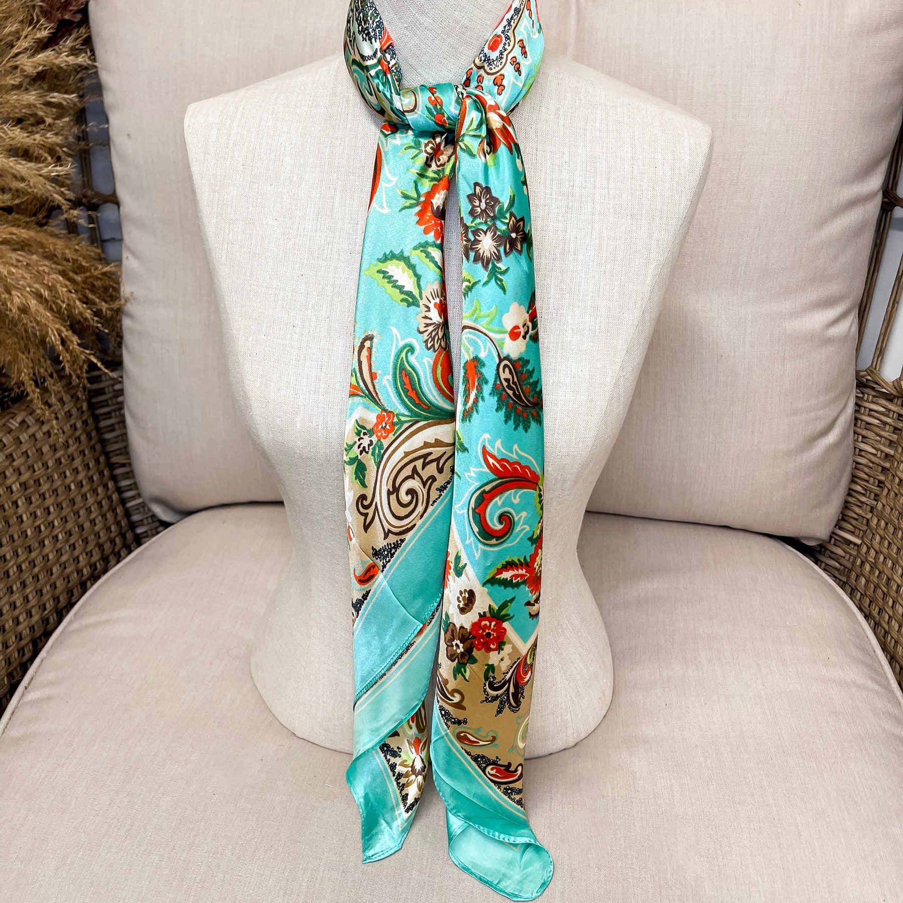 Our beautiful new line of wild rags are so fun and great for the upcoming seasons! Tie this in your hair, around your neck, or around your purse and you're set!