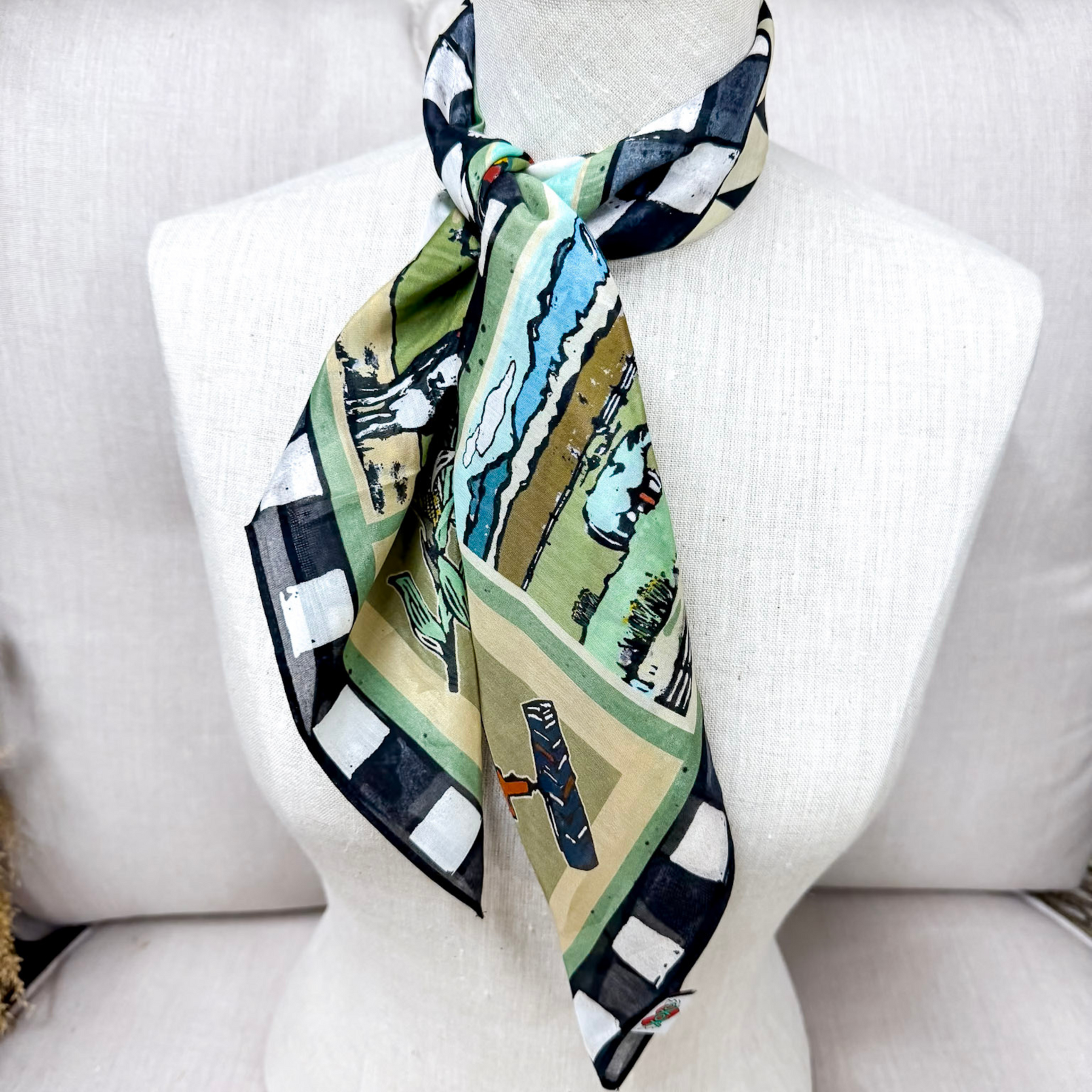 Introducing our latest addition to the lineup:  XOXO Art & Co. Wild Rag Scarves! Hand-designed and crafted right here in Texas by a dynamic mom and daughter duo, these scarves embody the spirit of Giddy Up Glamour. Measuring 26x26 inches, they are crafted from a luxurious blend of 70% cotton and 30% silk, ensuring both style and comfort. Wrap yourself in the essence of Texas with these beautifully crafted accessories, perfect for adding a touch of Western flair to any outfit.