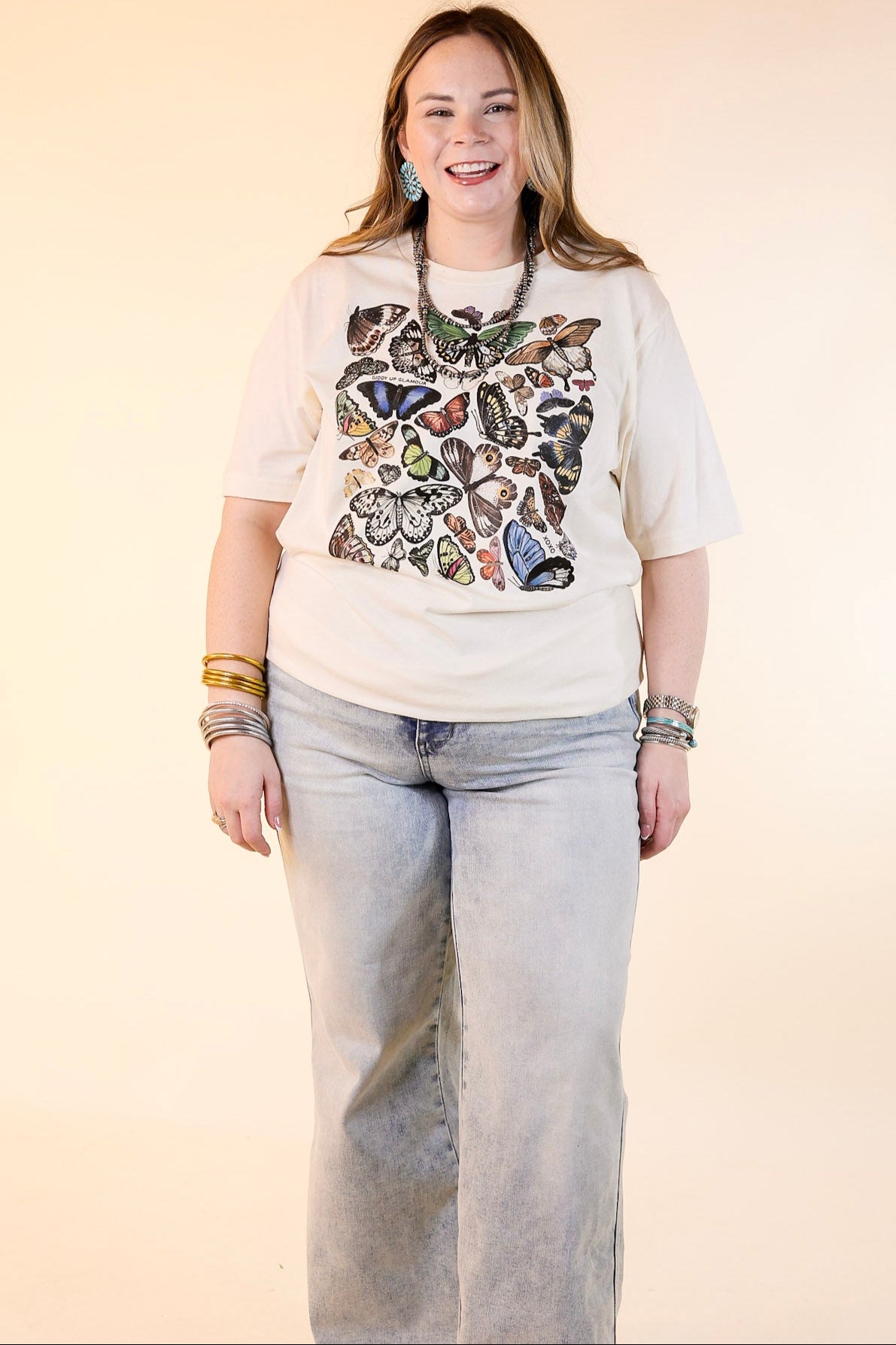 XOXO Art & Co | Butterflies Short Sleeve Graphic Tee in Natural Cream