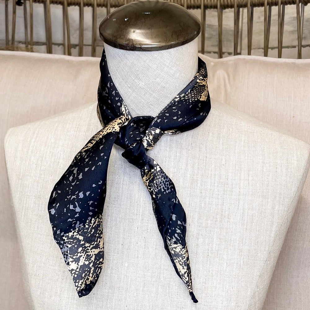 Mini Python Charmeuse Silk Wild Rag in Black and Gold