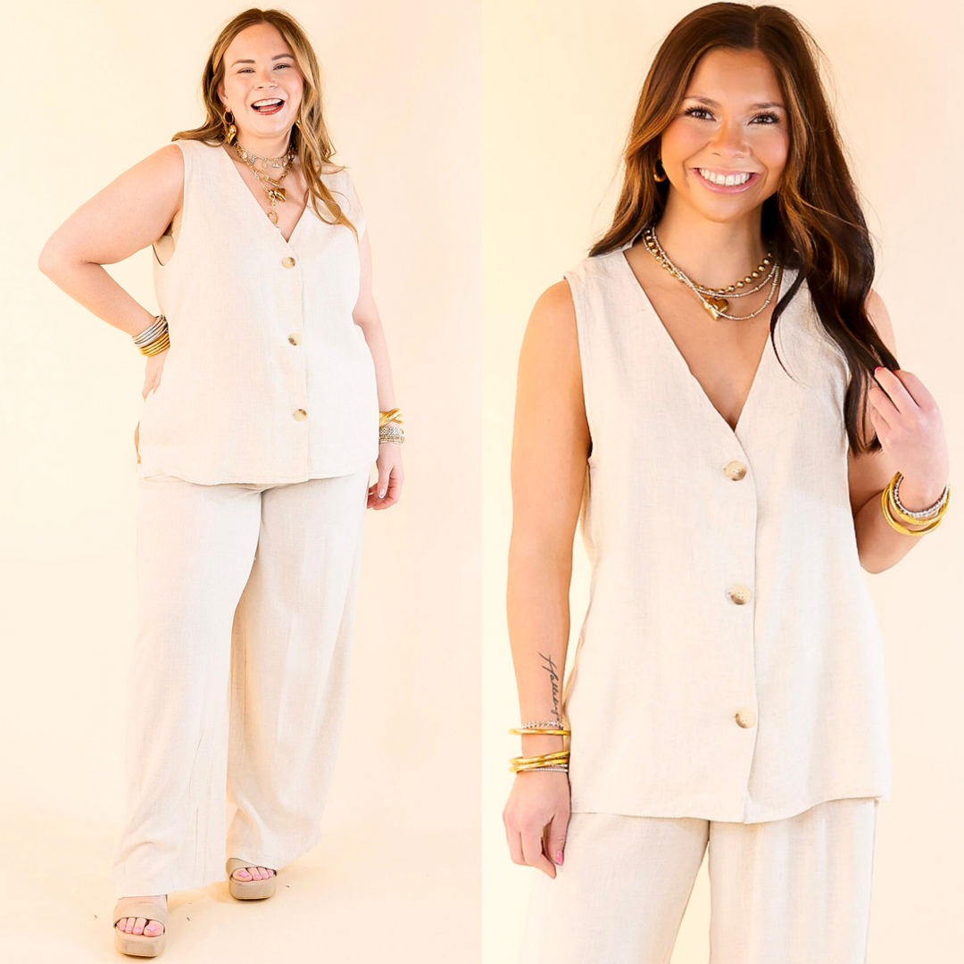 Styled for Success Button Up Linen Vest in Oatmeal Beige