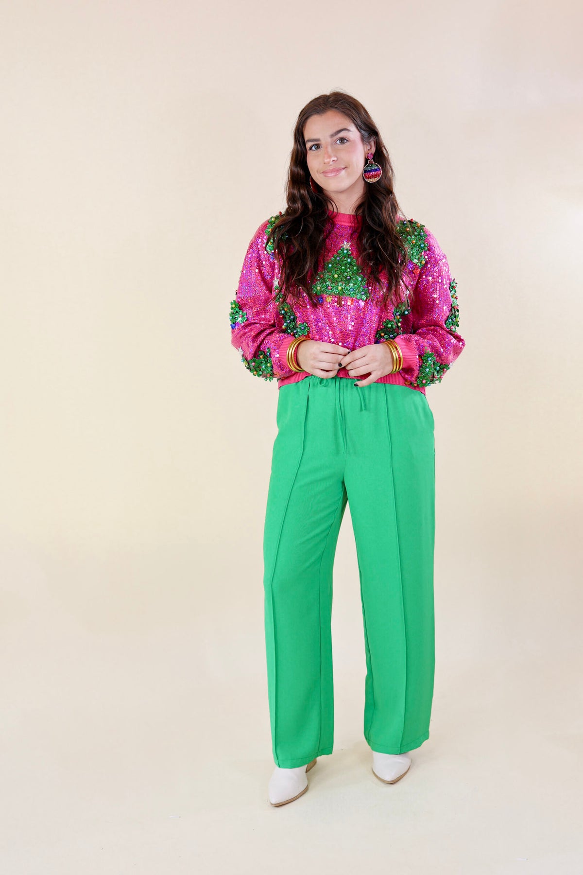 Bossy Business Drawstring Trouser Pants with Pockets in Green - Giddy Up Glamour Boutique