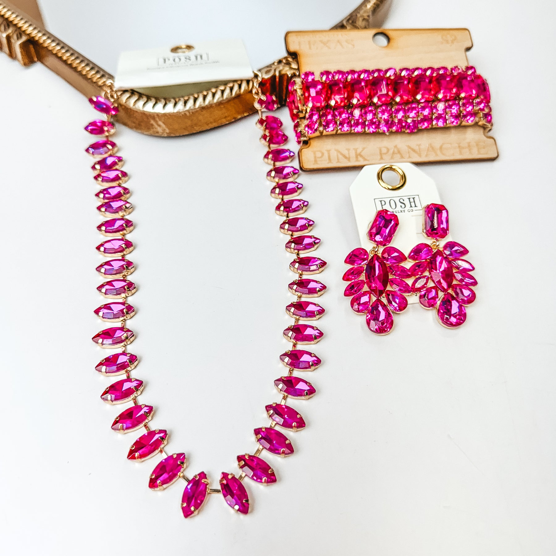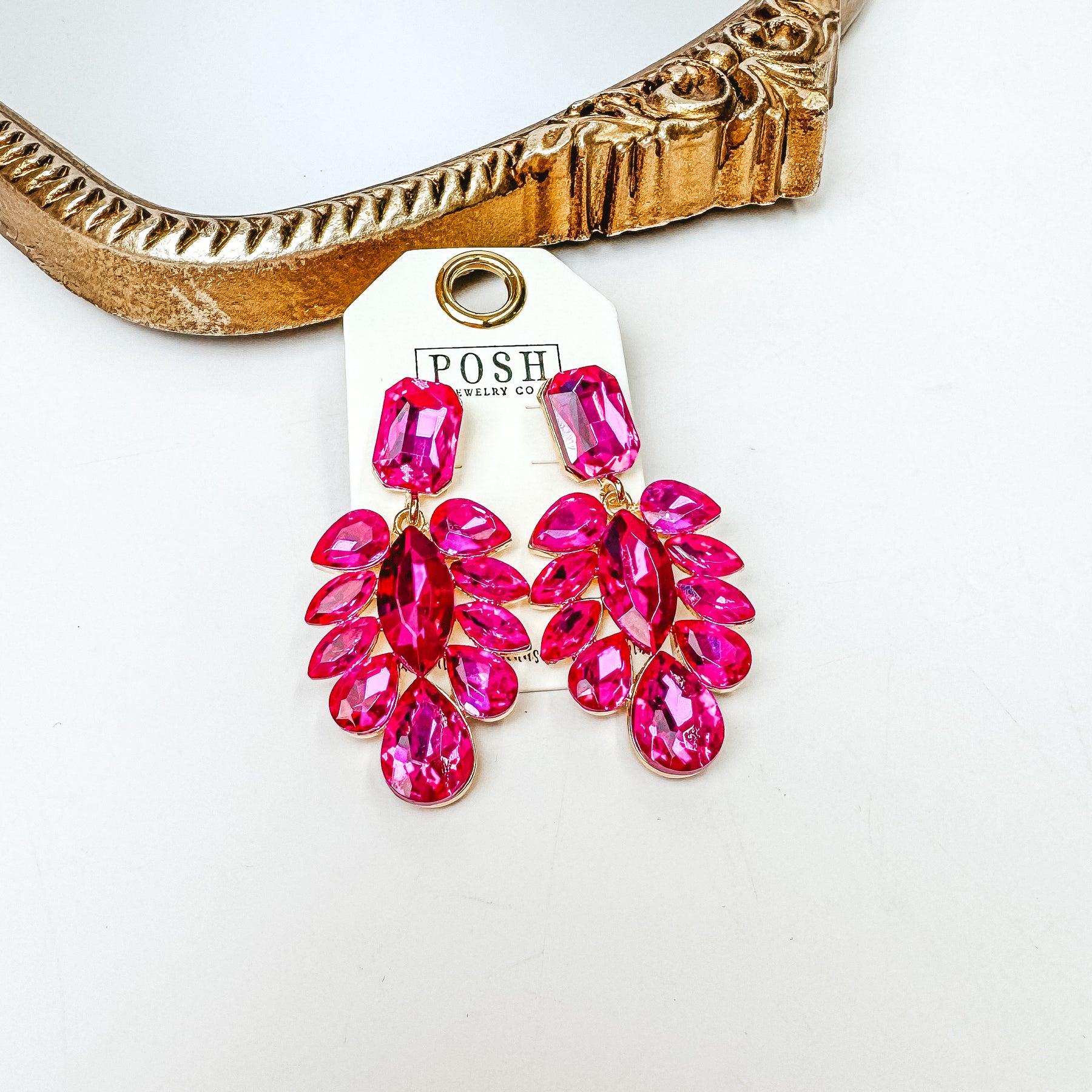 Posh by Pink Panache | Gold Tone Crystal Teardrop Statement Earrings in Fuchsia Pink