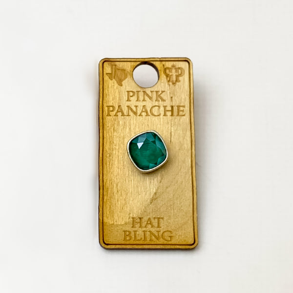 Pink Panache | Silver Tone 12mm Hat Pin with Emerald Cushion Cut Crystal