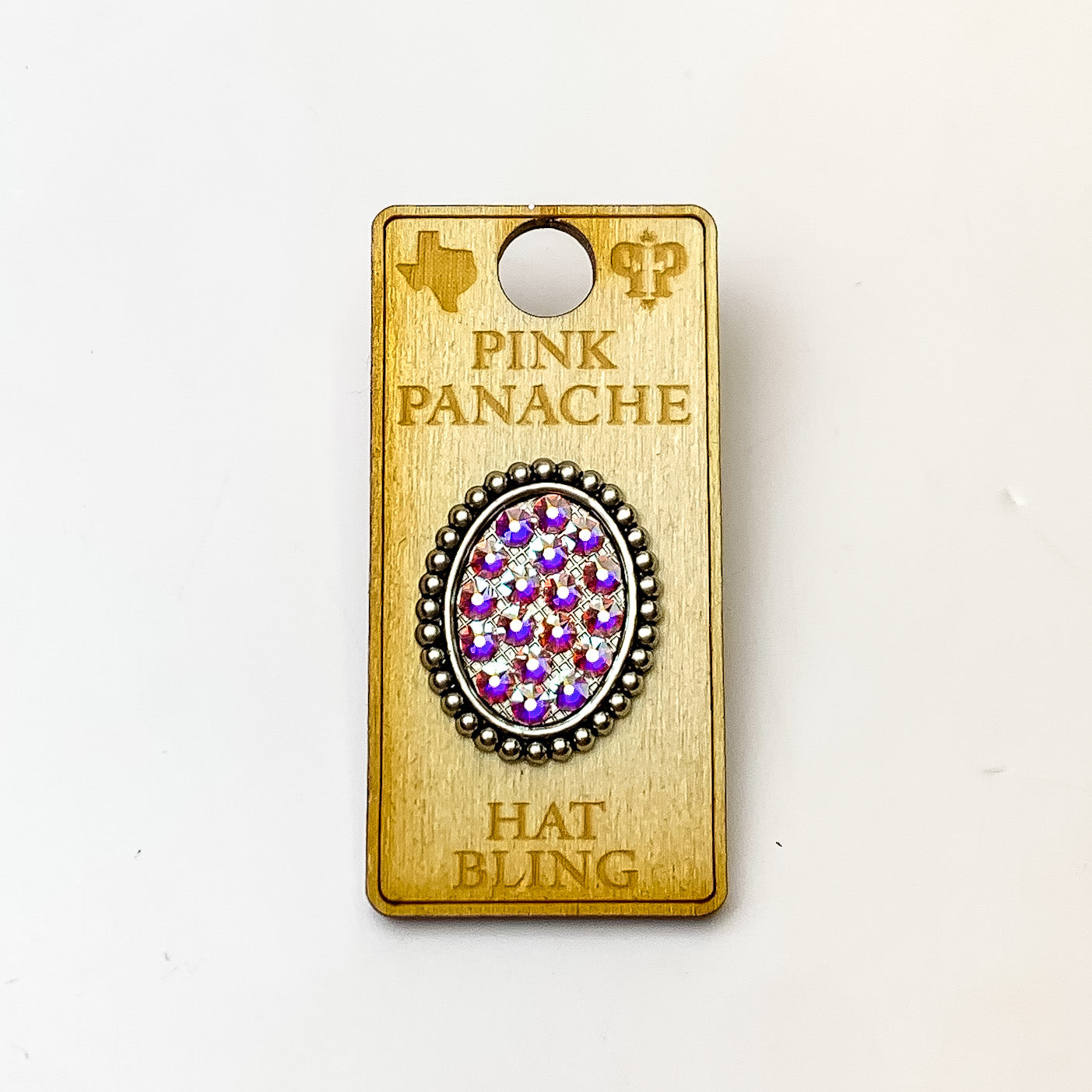 Pink Panache | Silver Tone Oval Hat Pin with AB Crystals