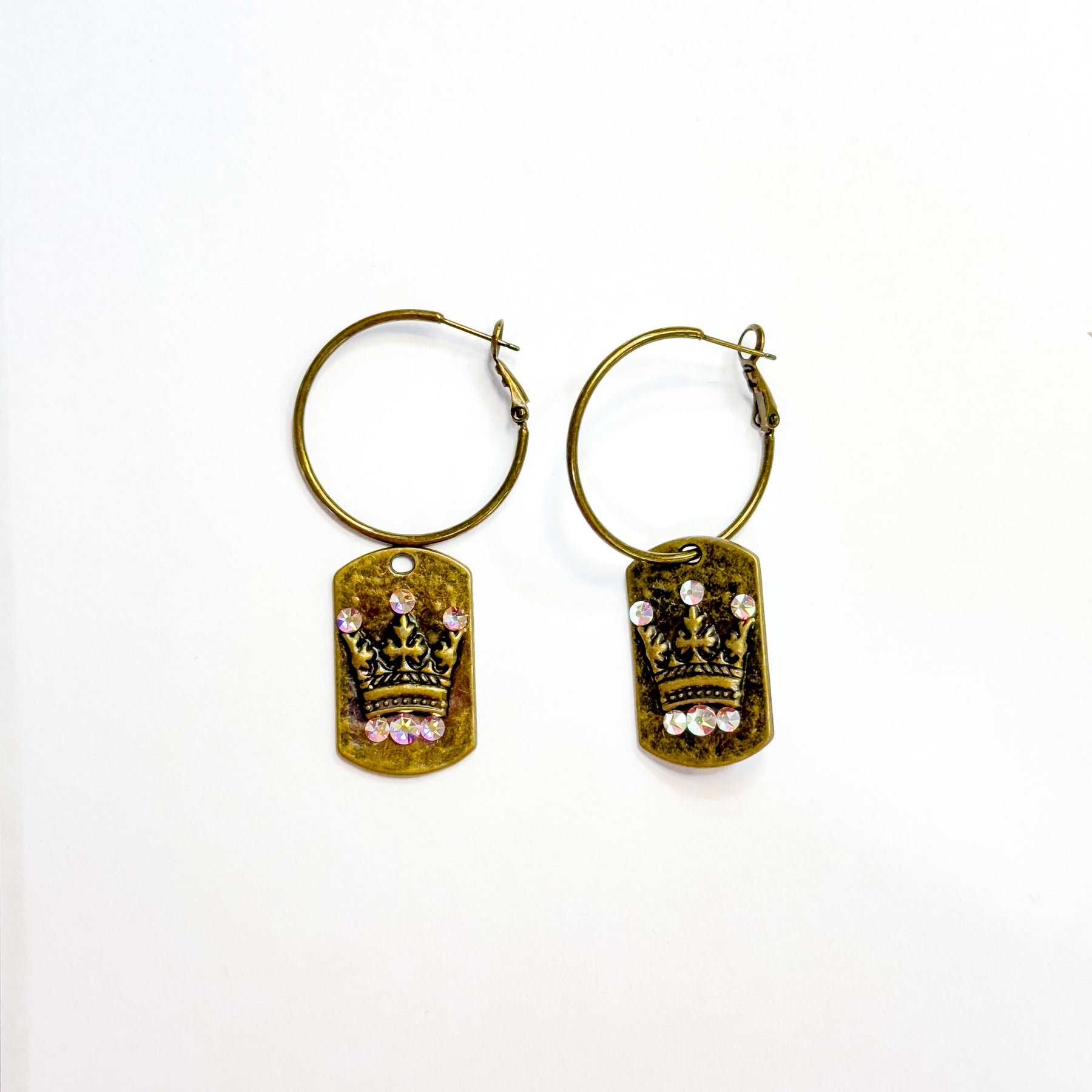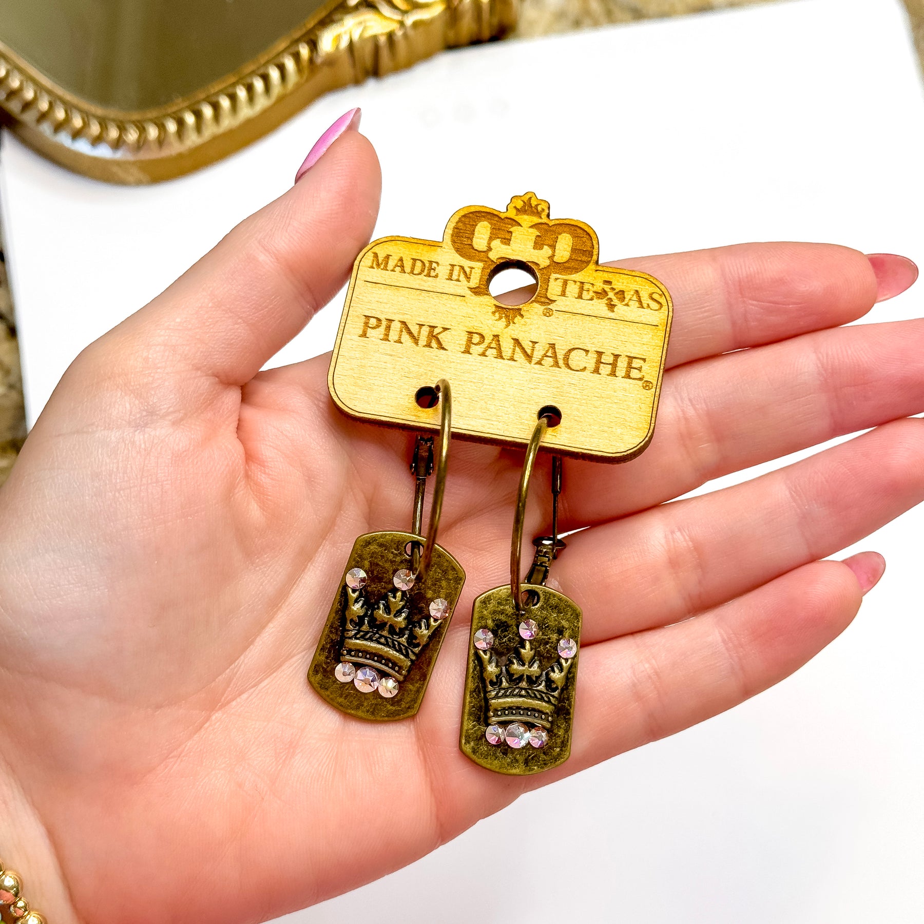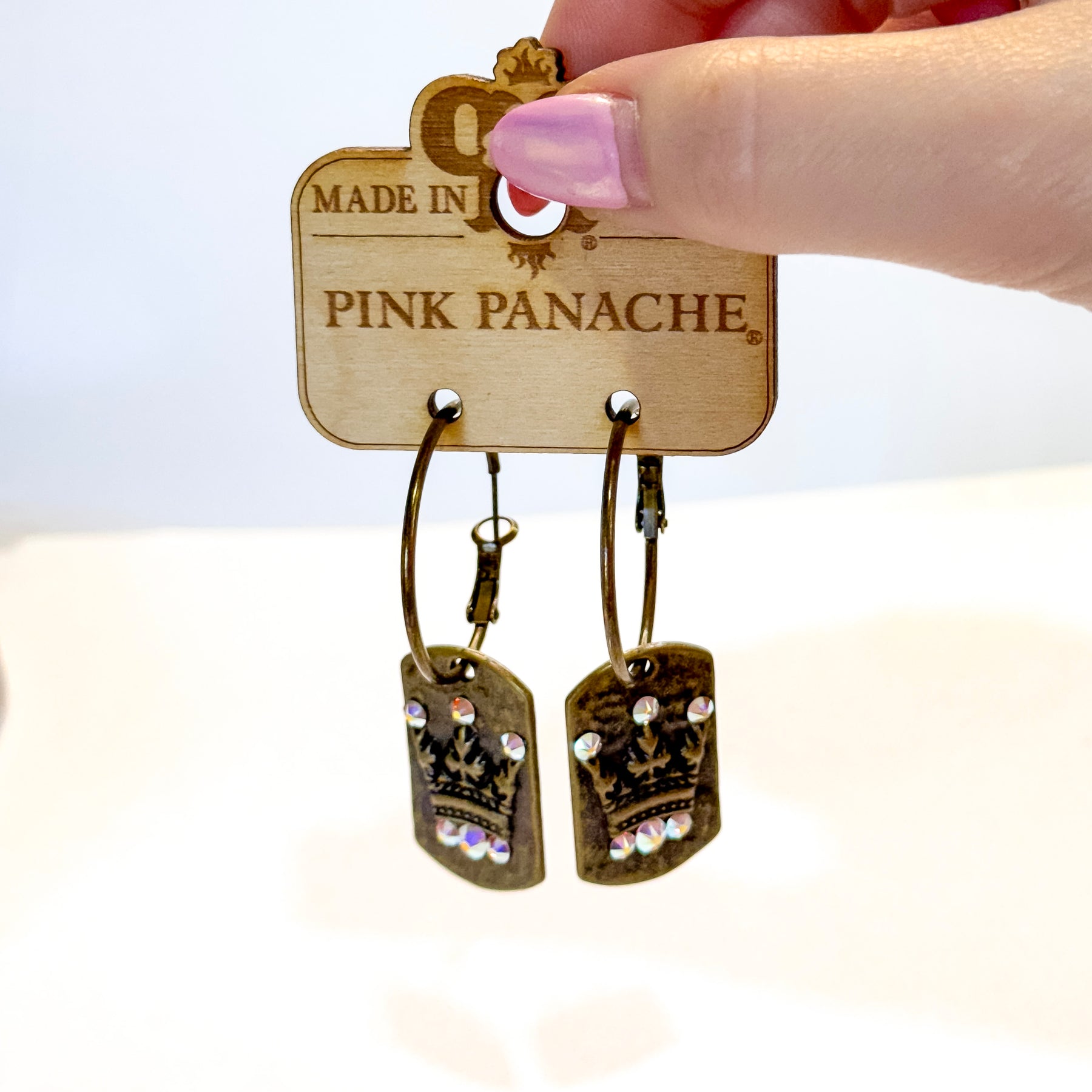 Pink Panache | Crowned Jewel Bronze Tone Hoop Earrings with AB Crystal Accents