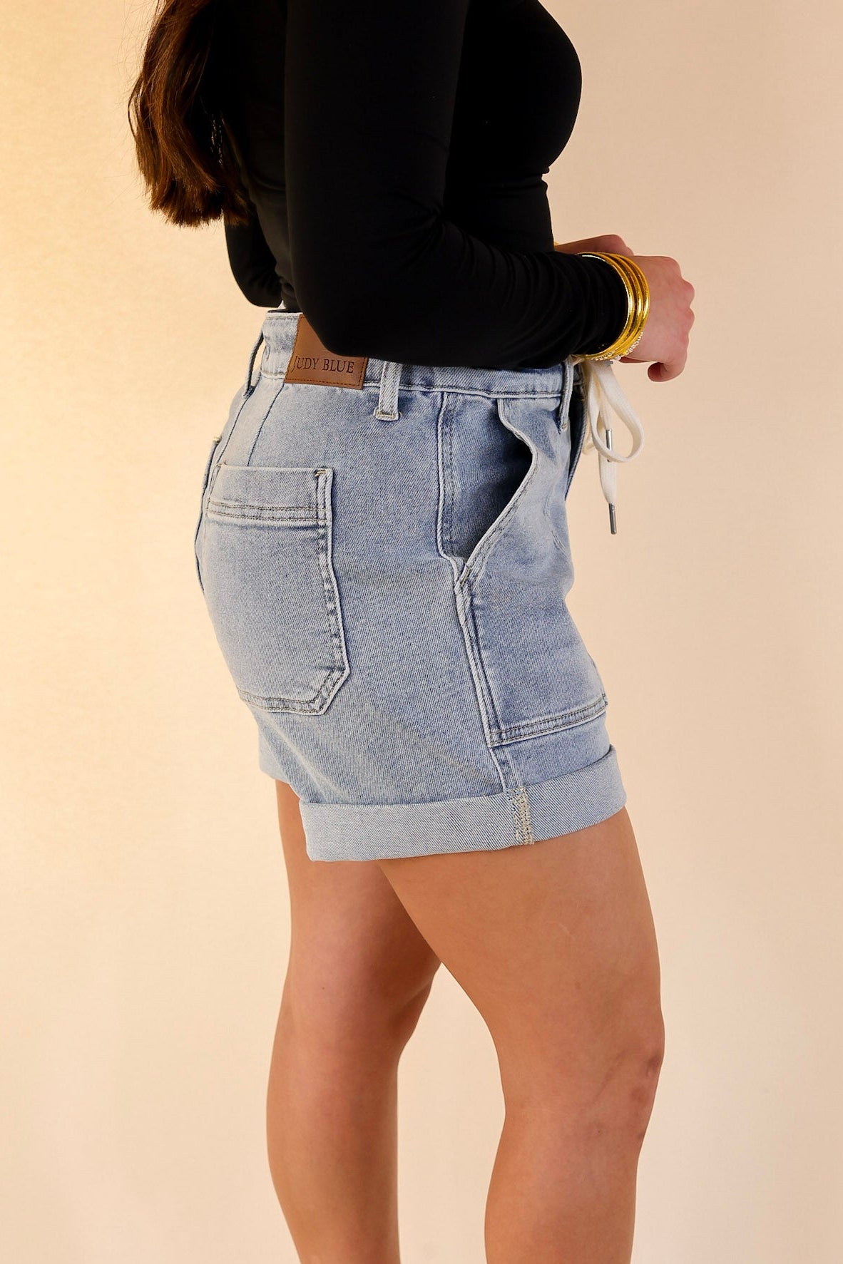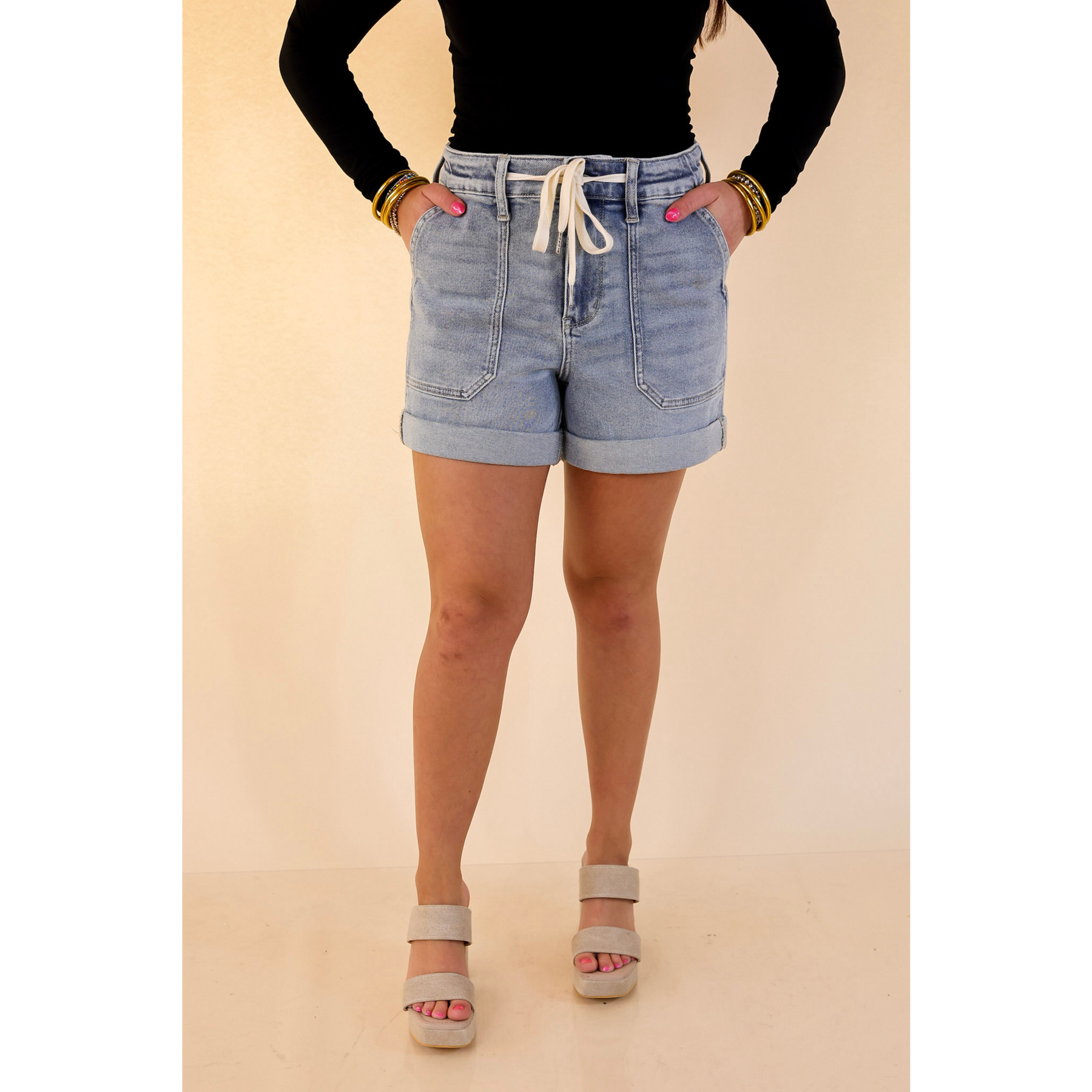 Judy Blue | Off the Cuff Cuffed Jogger Shorts in Light Wash