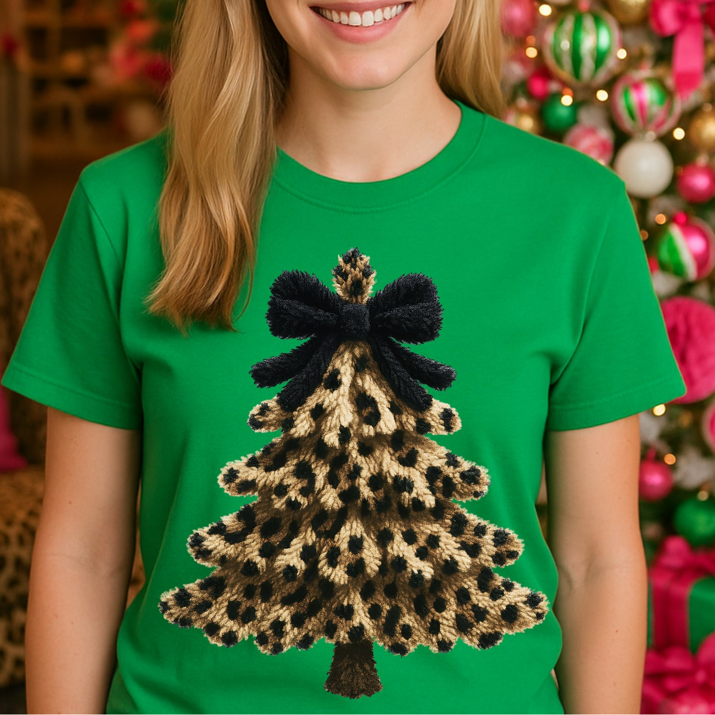 Online Exclusive | Leopard Tree Faux Yarn Christmas Graphic on Tee and Sweatshirt in Multiple Color Options