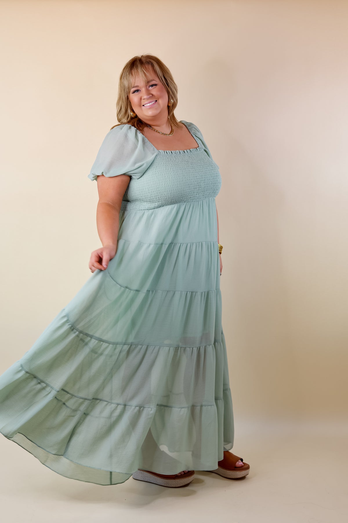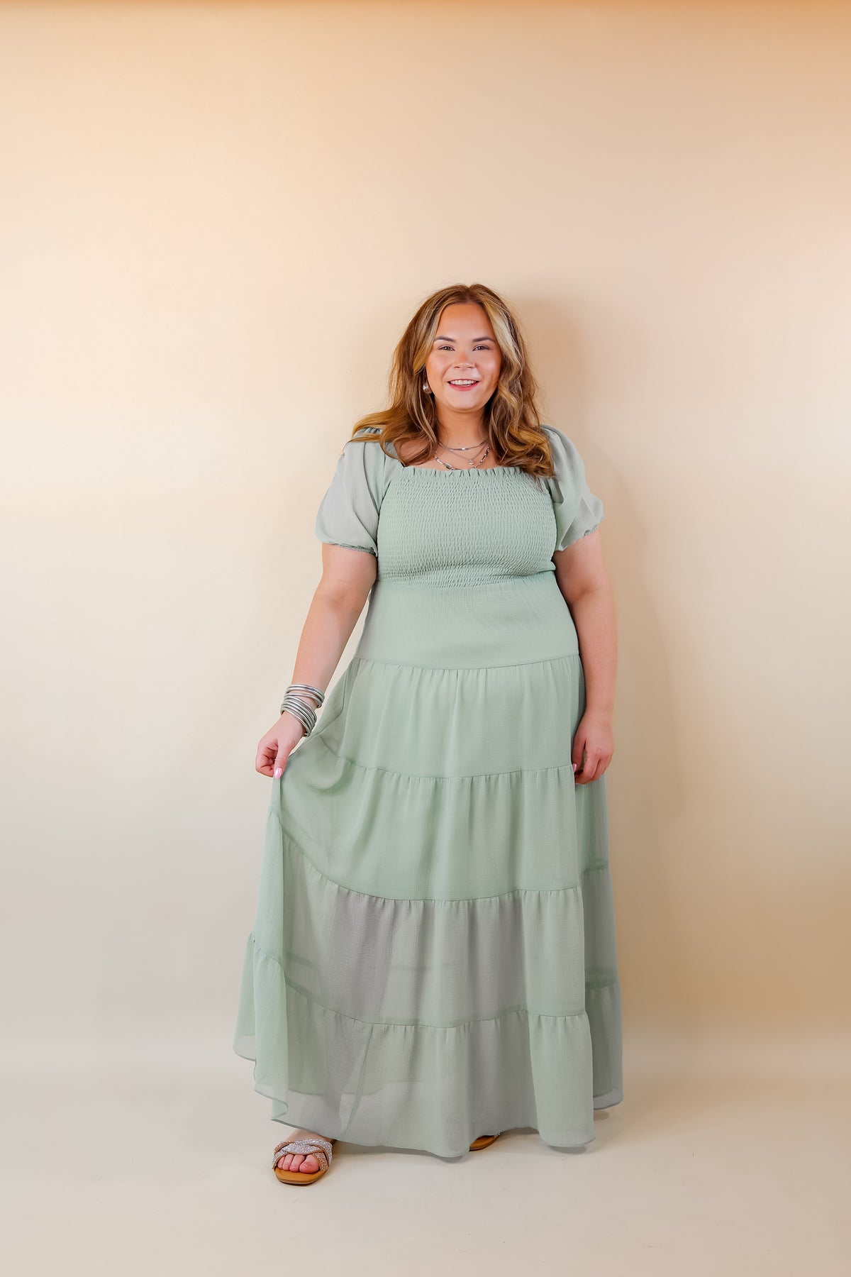 Honeysuckle Love Tiered Maxi Dress with Smocked Bodice in Sage Green