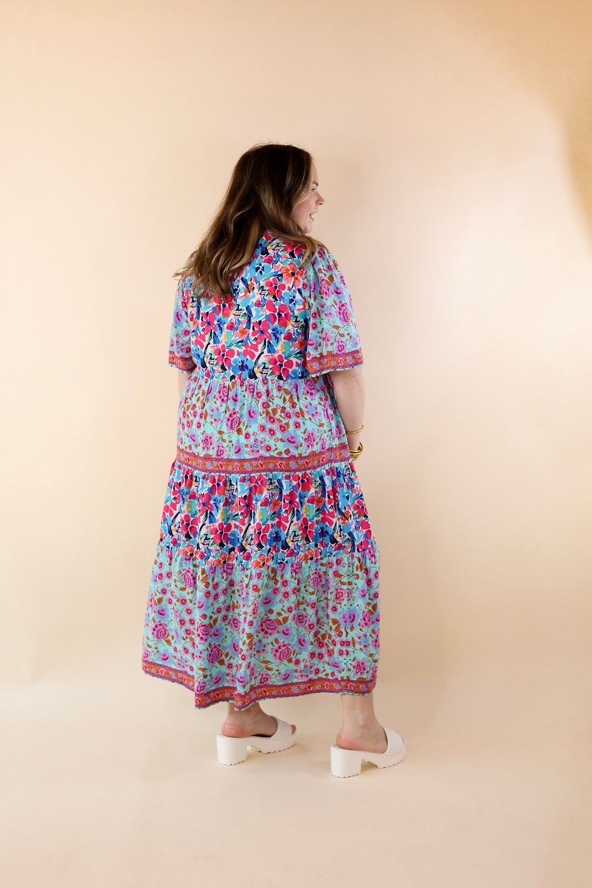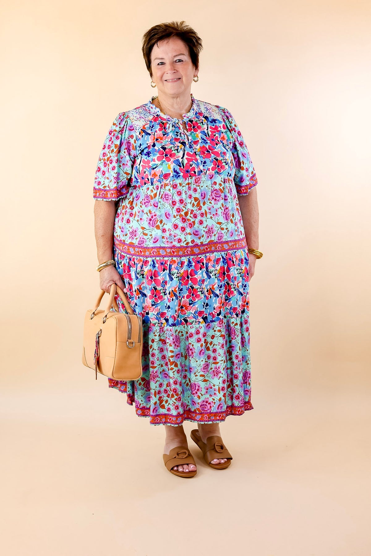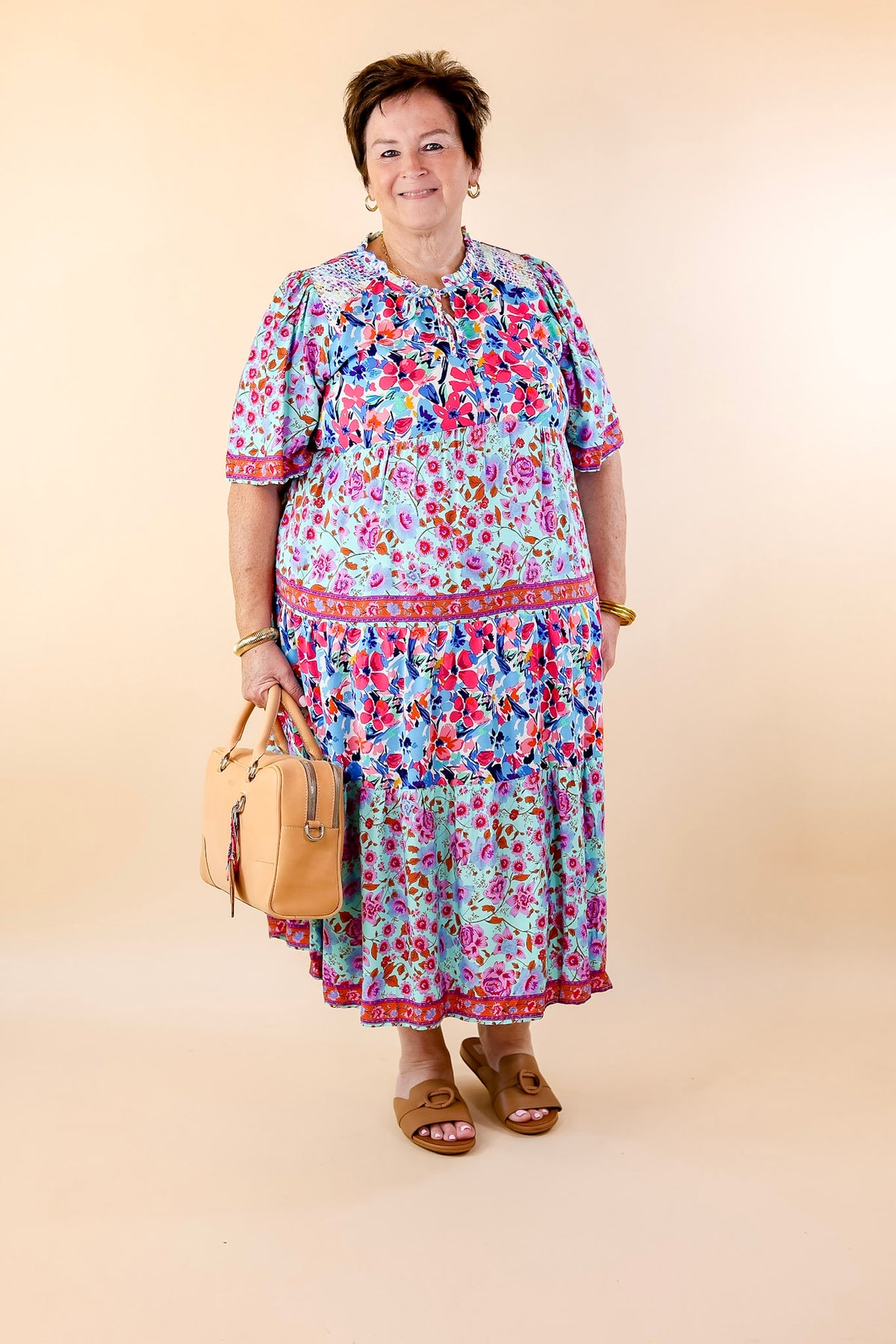 Tulip Fields Floral Tiered Midi Dress in Mint Green Mix